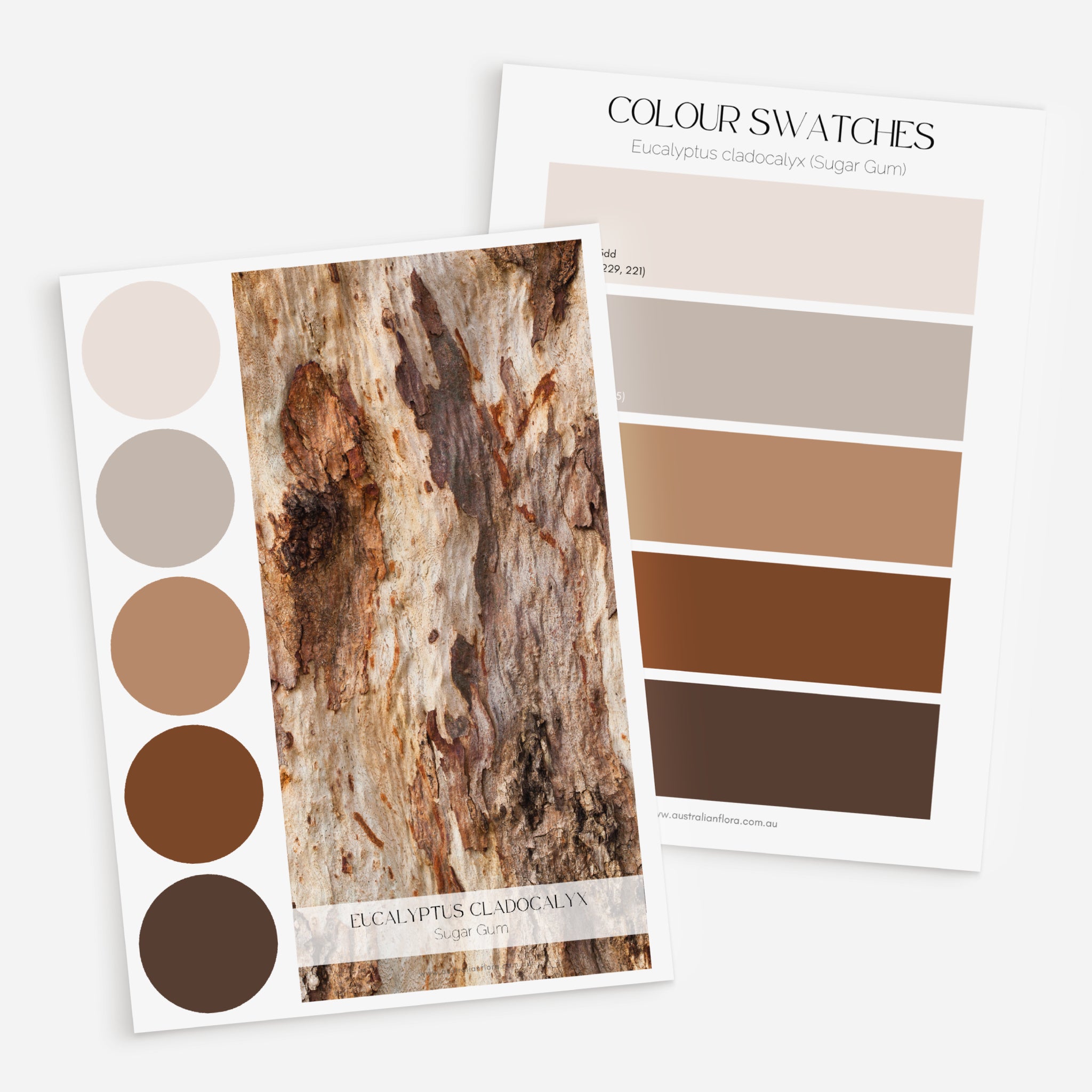 A palette of earthy browns inspired by the bark of the Sugar Gum, this palette includes: