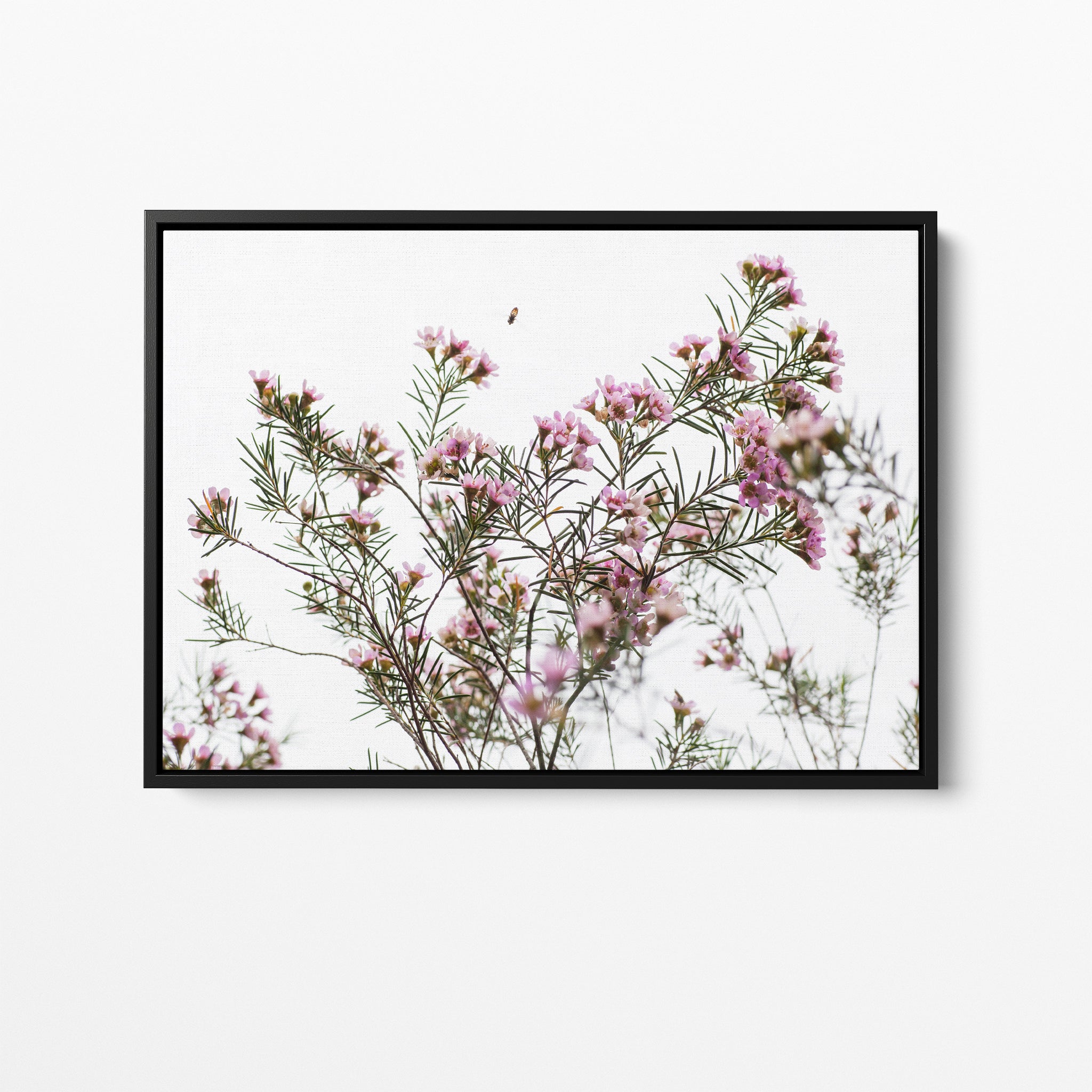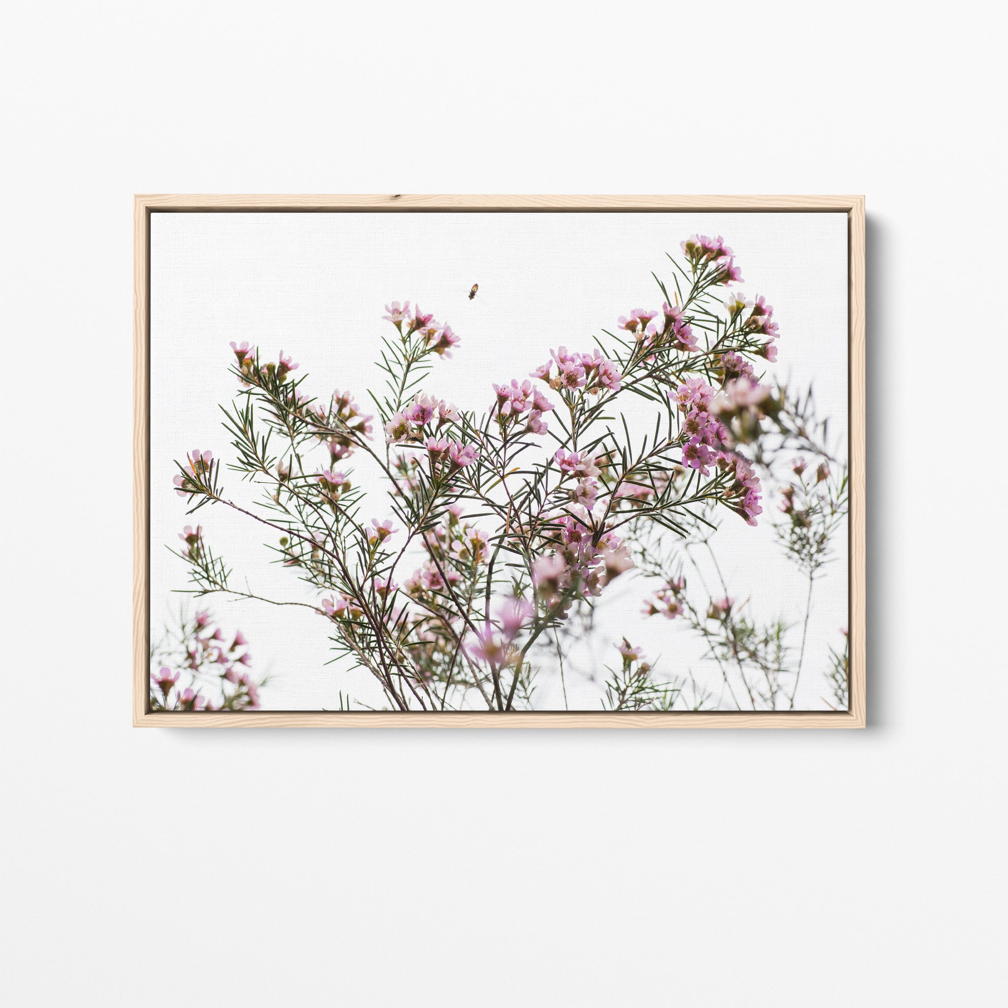Geraldton Wax flowers and bee premium framed canvas by Australian Flora.
