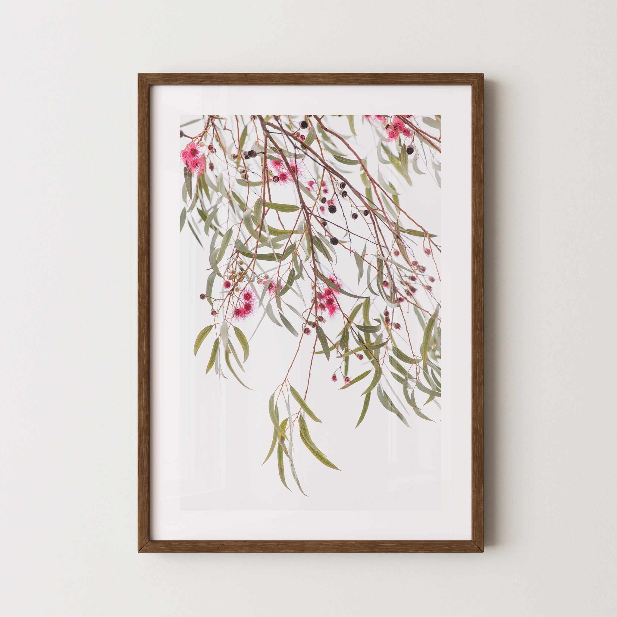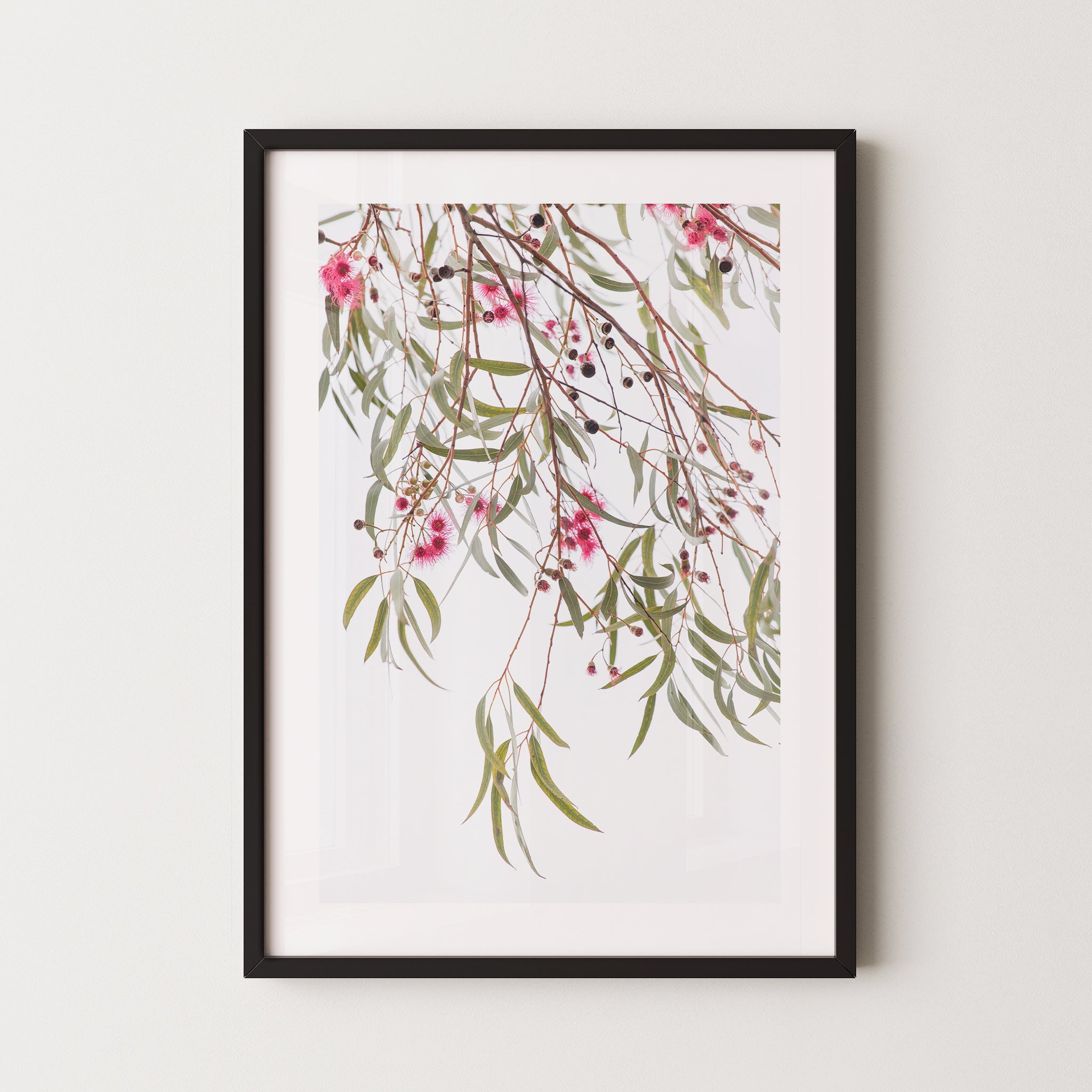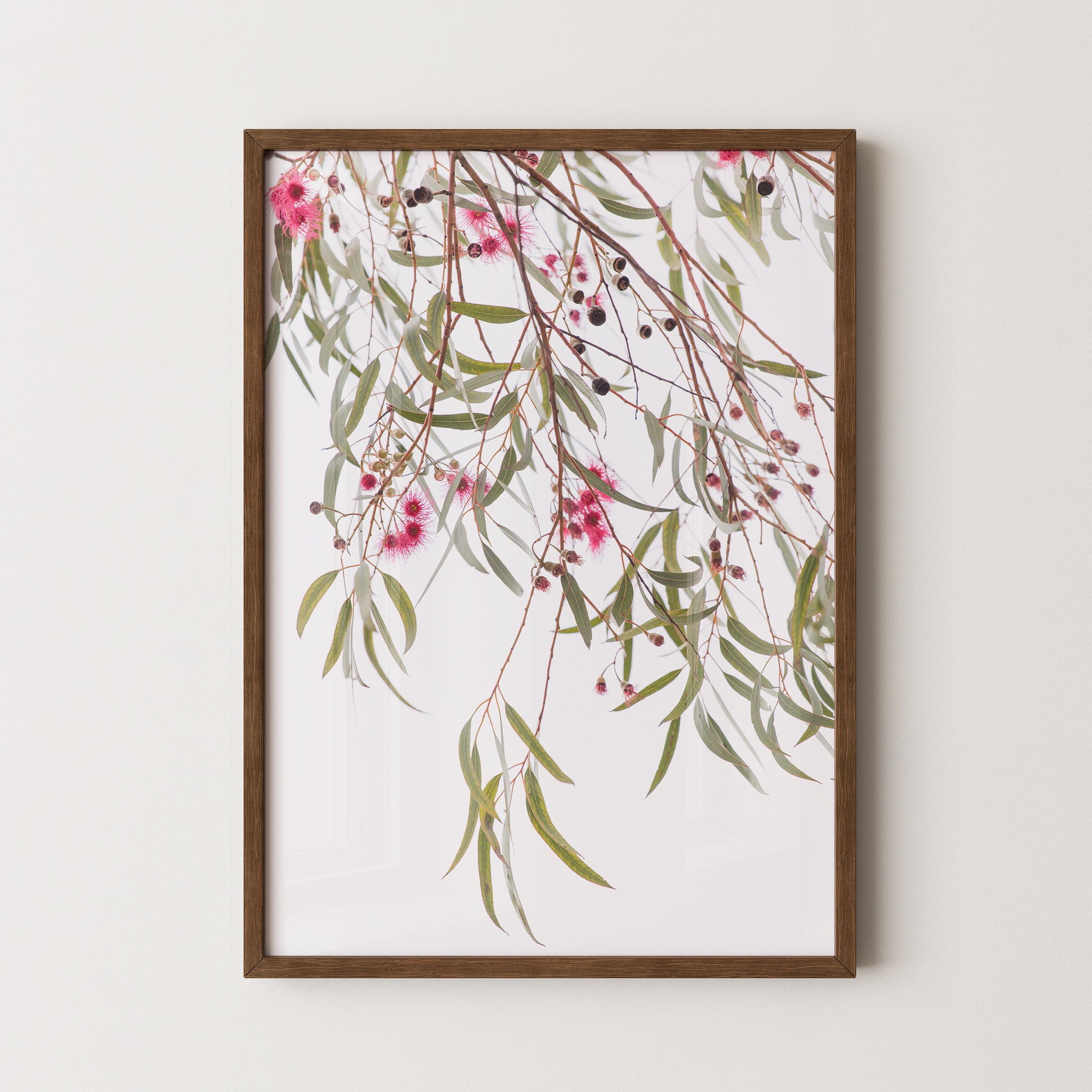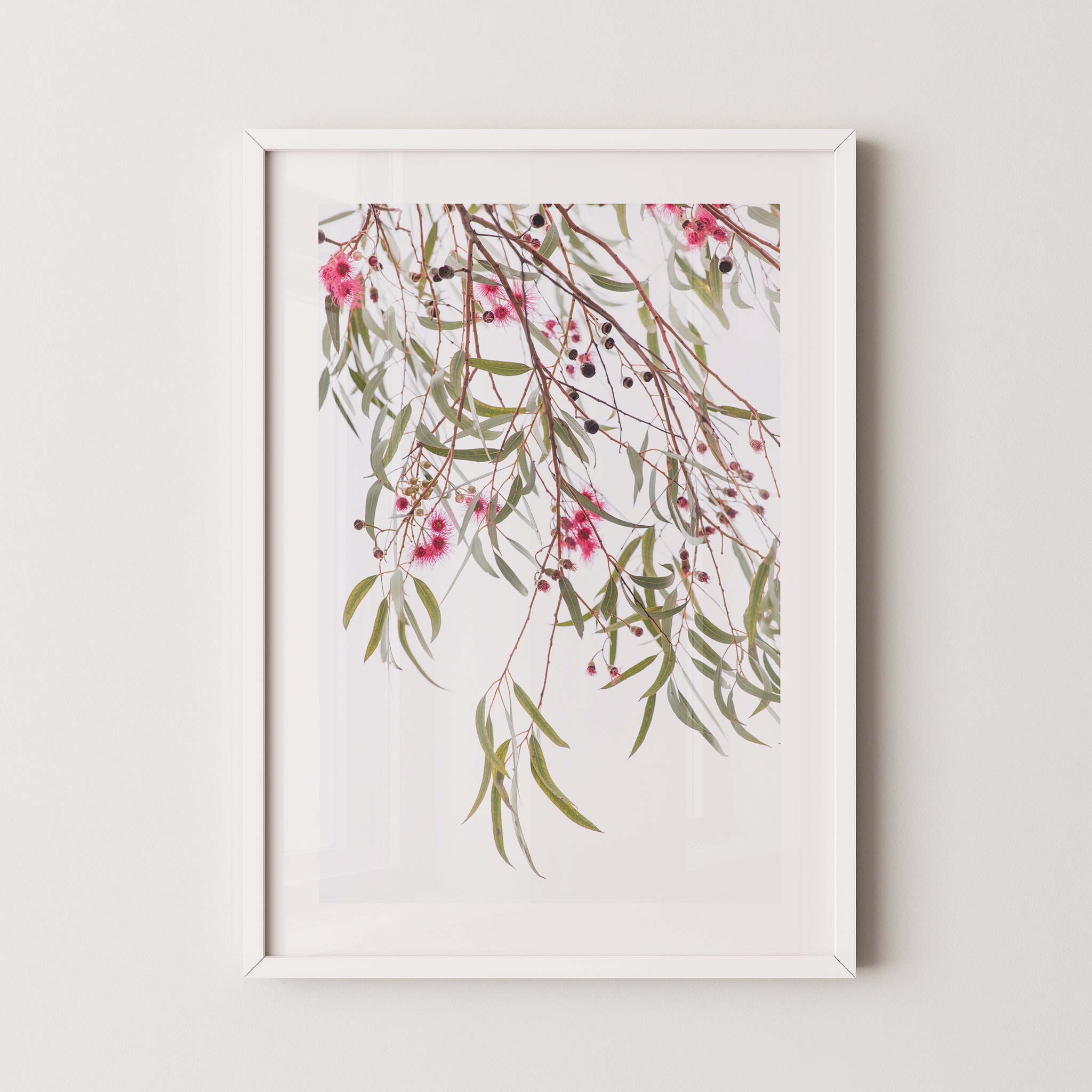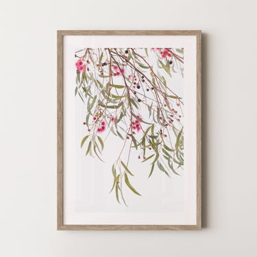 Blue gum leaves and blossoms premium framed artwork by Australian Flora.