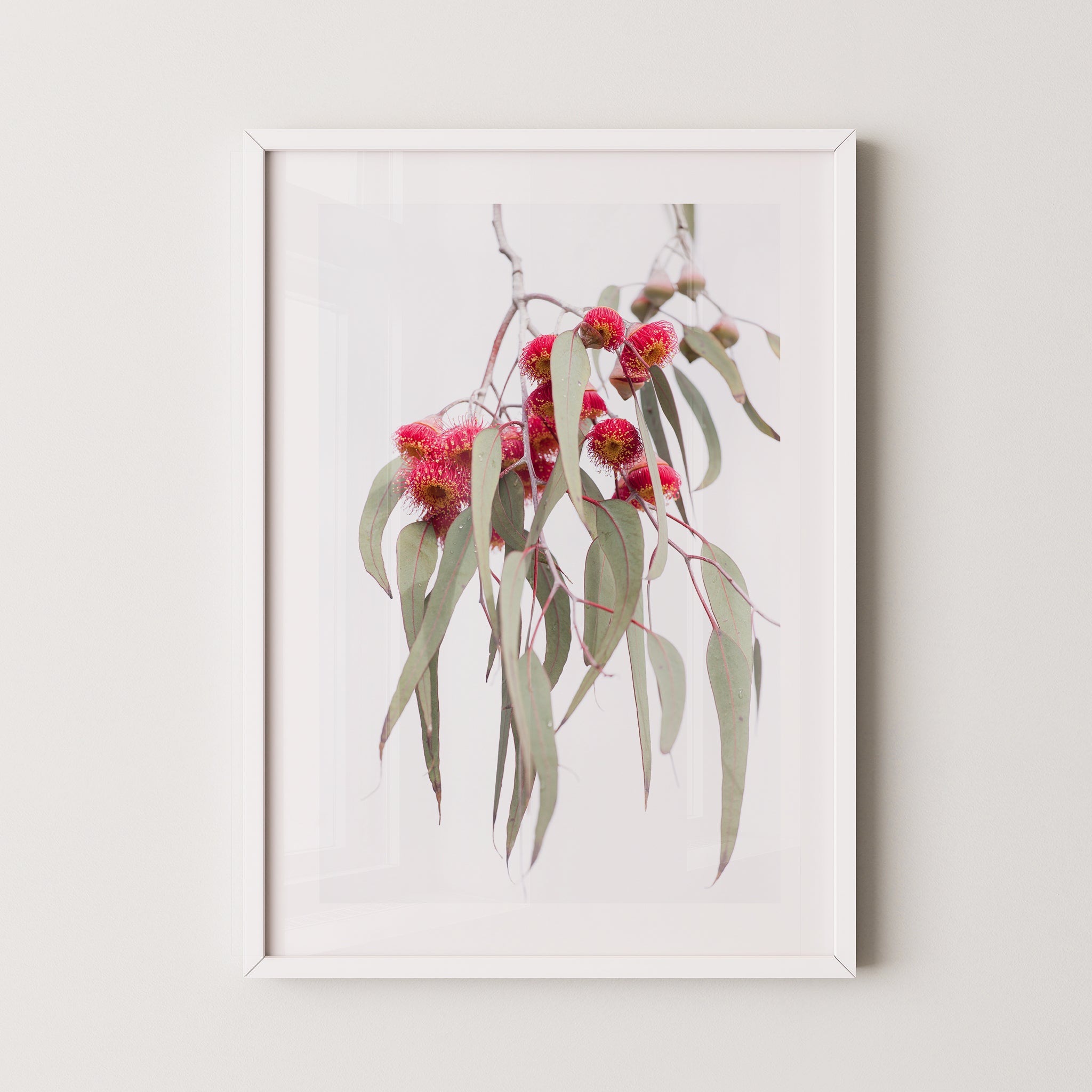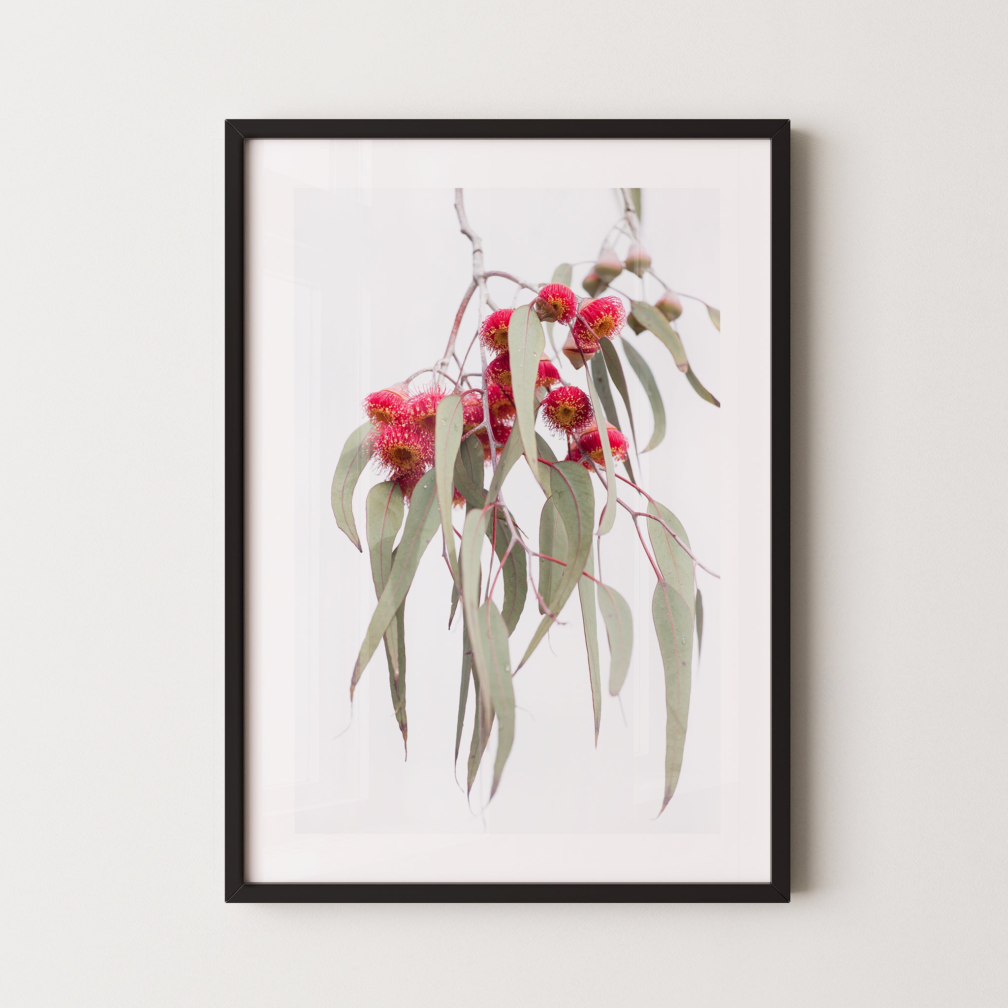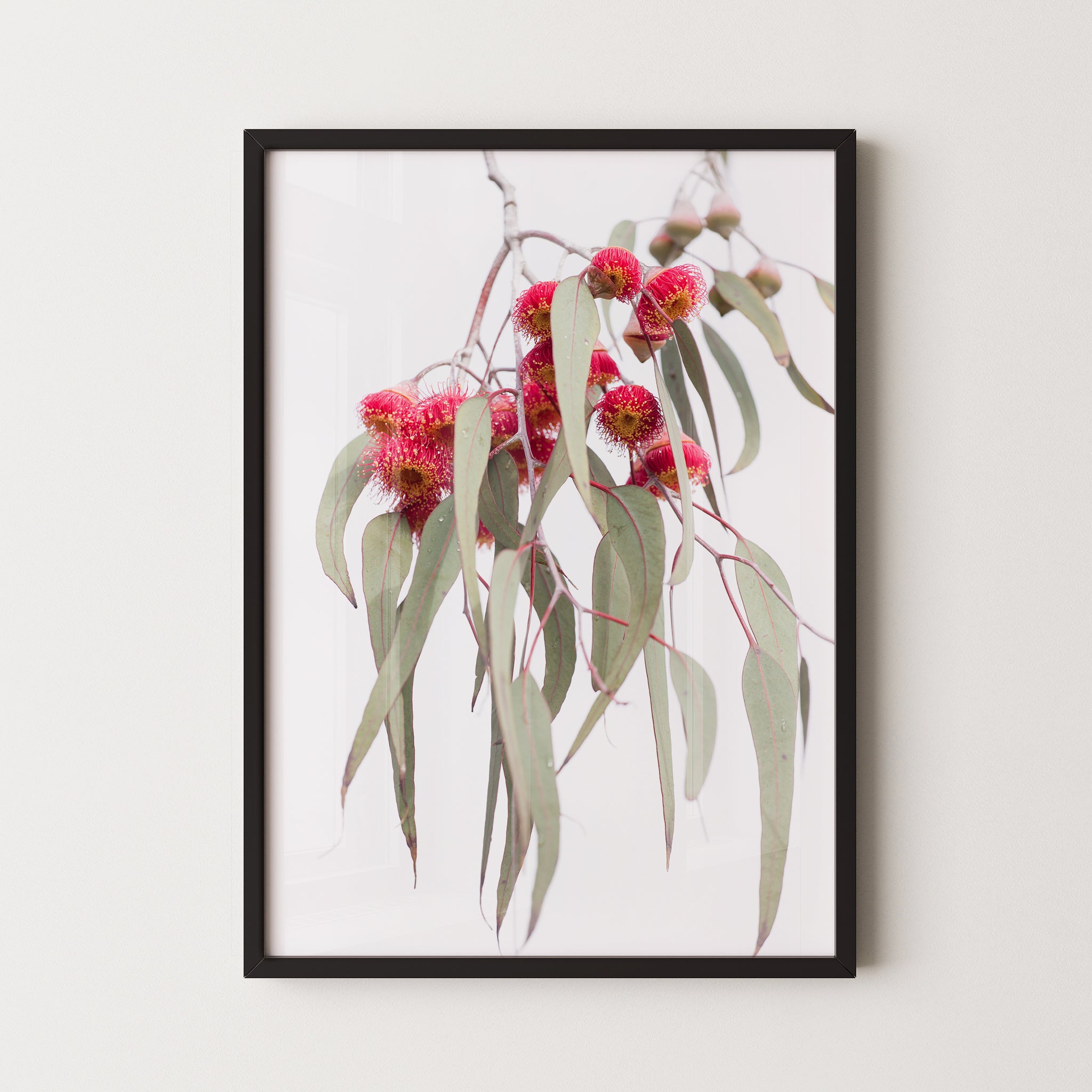 Eucalyptus caesia 'Silver Princess' blossom cluster premium framed artwork by Australian Flora.