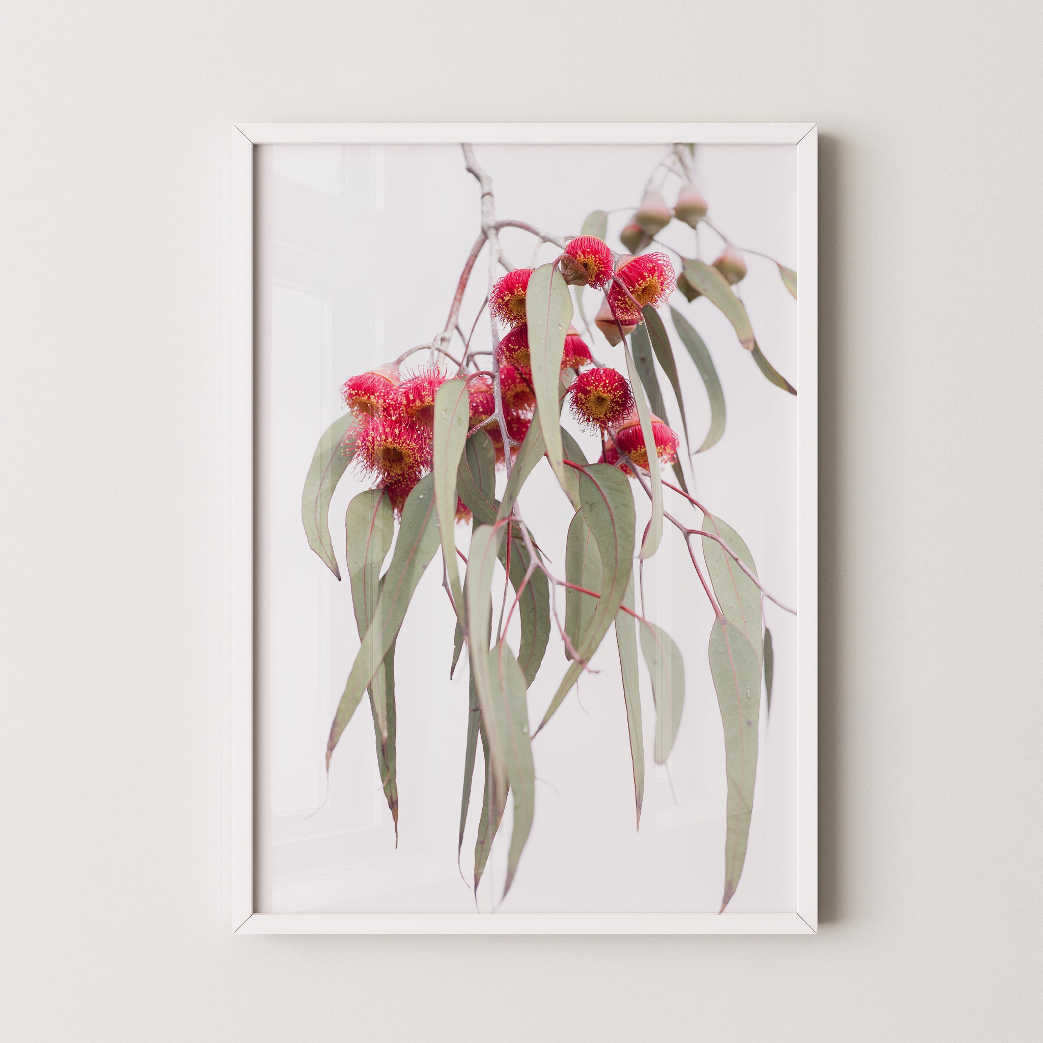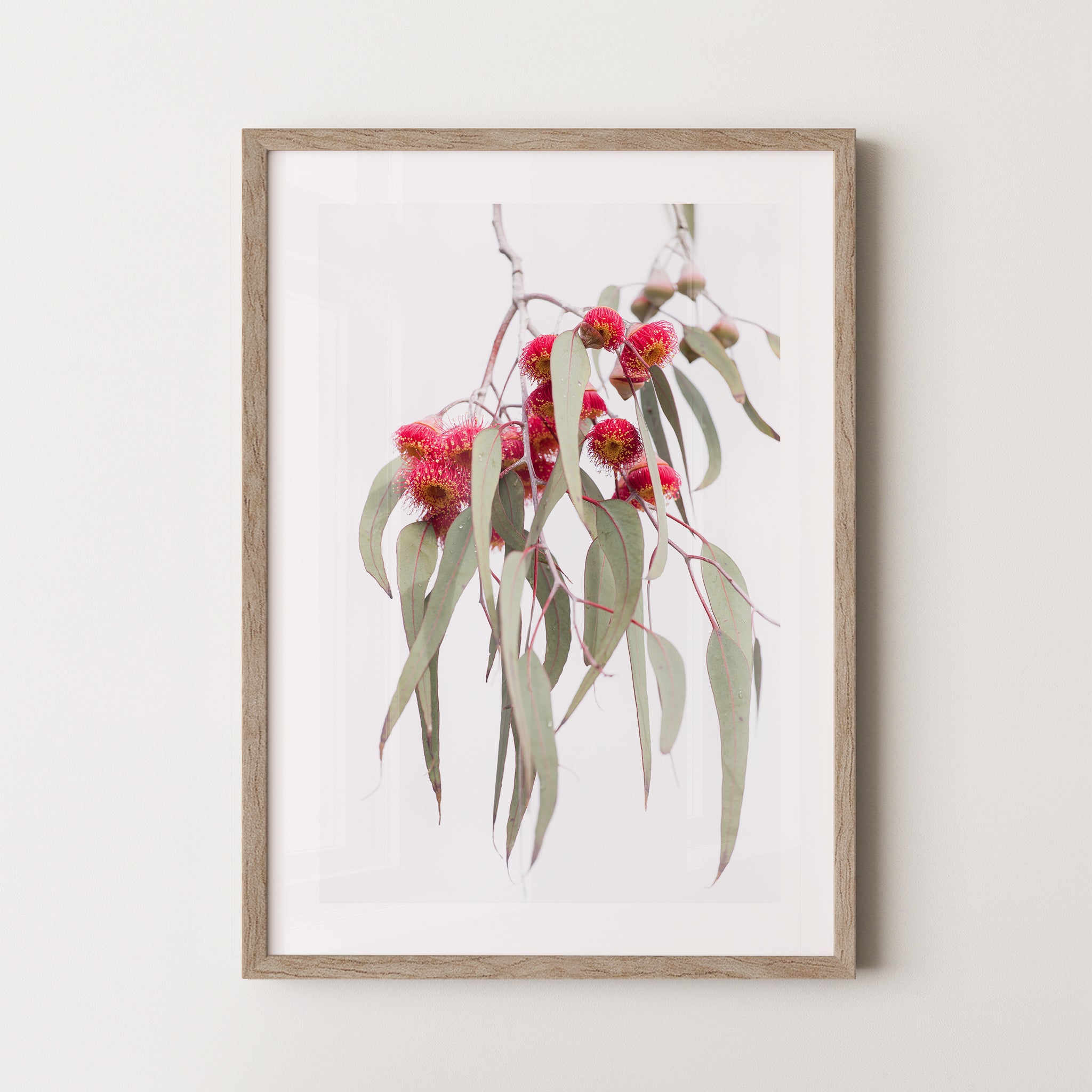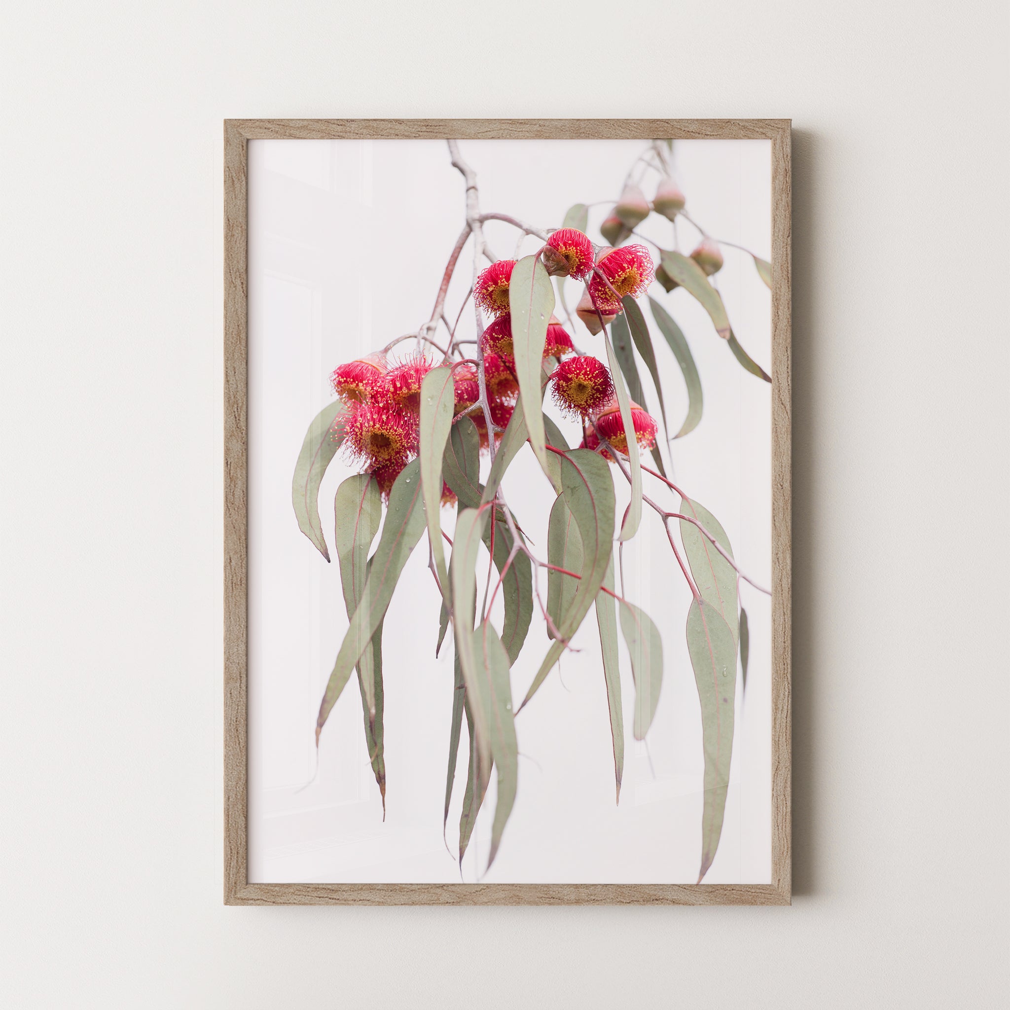 Eucalyptus caesia 'Silver Princess' blossom cluster premium framed artwork by Australian Flora.