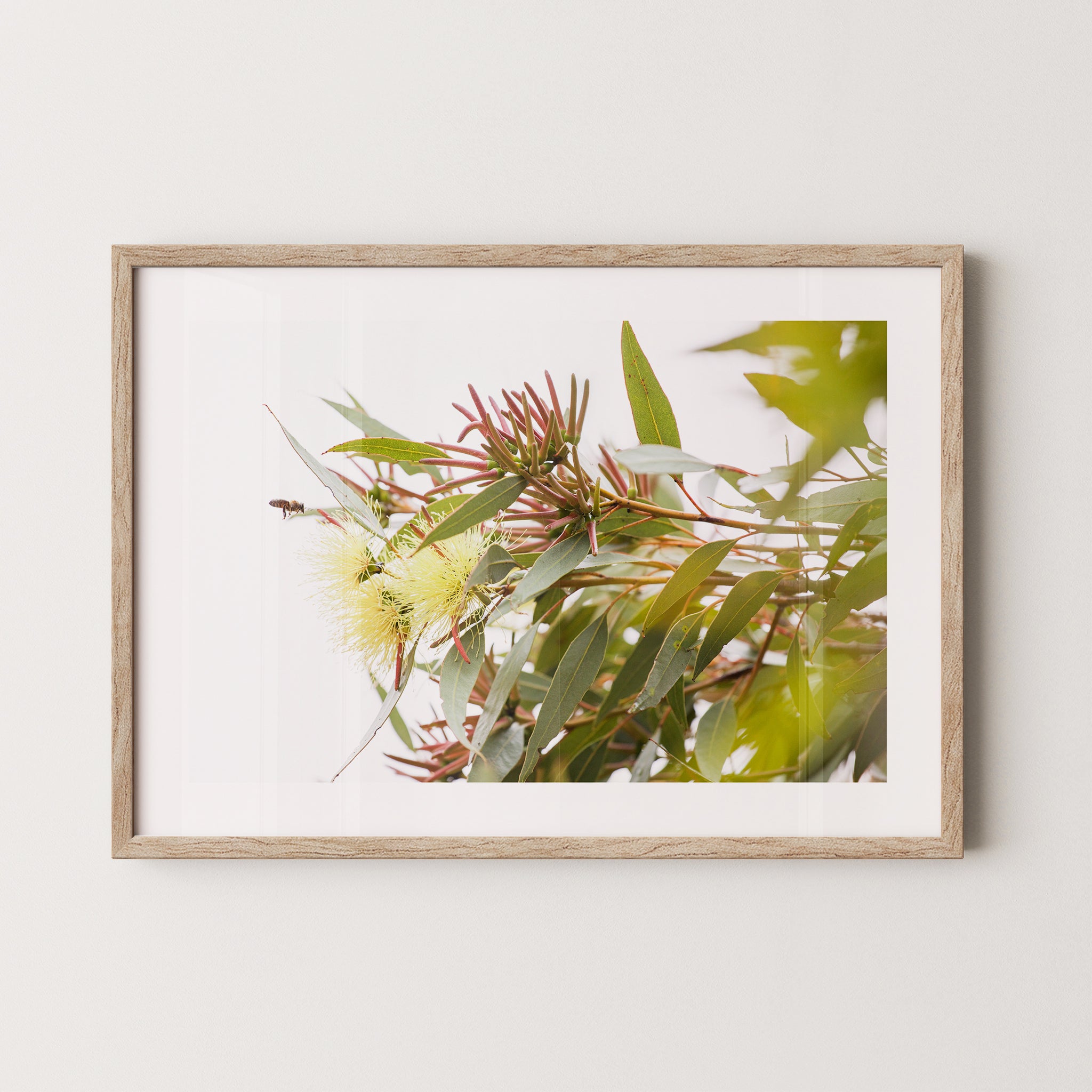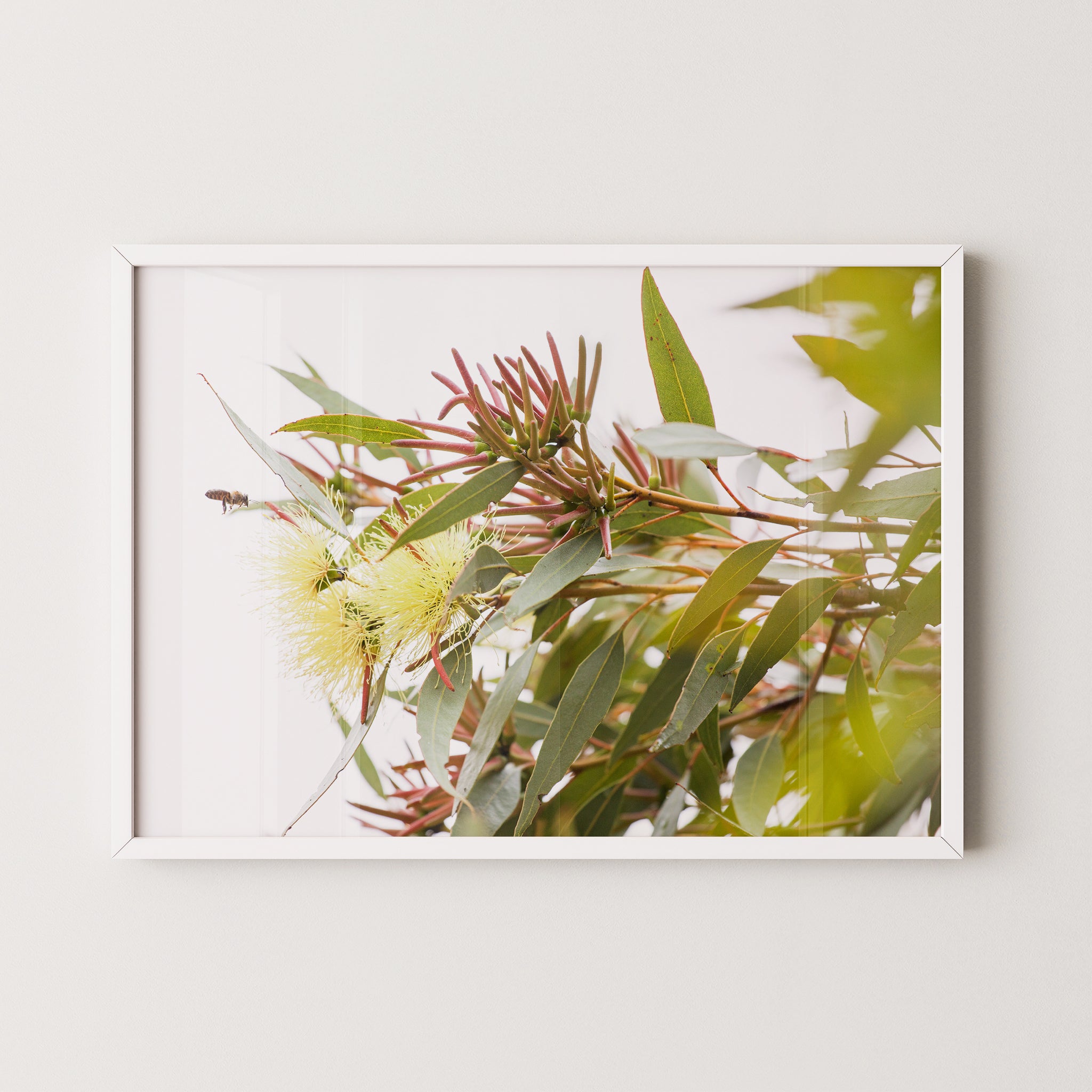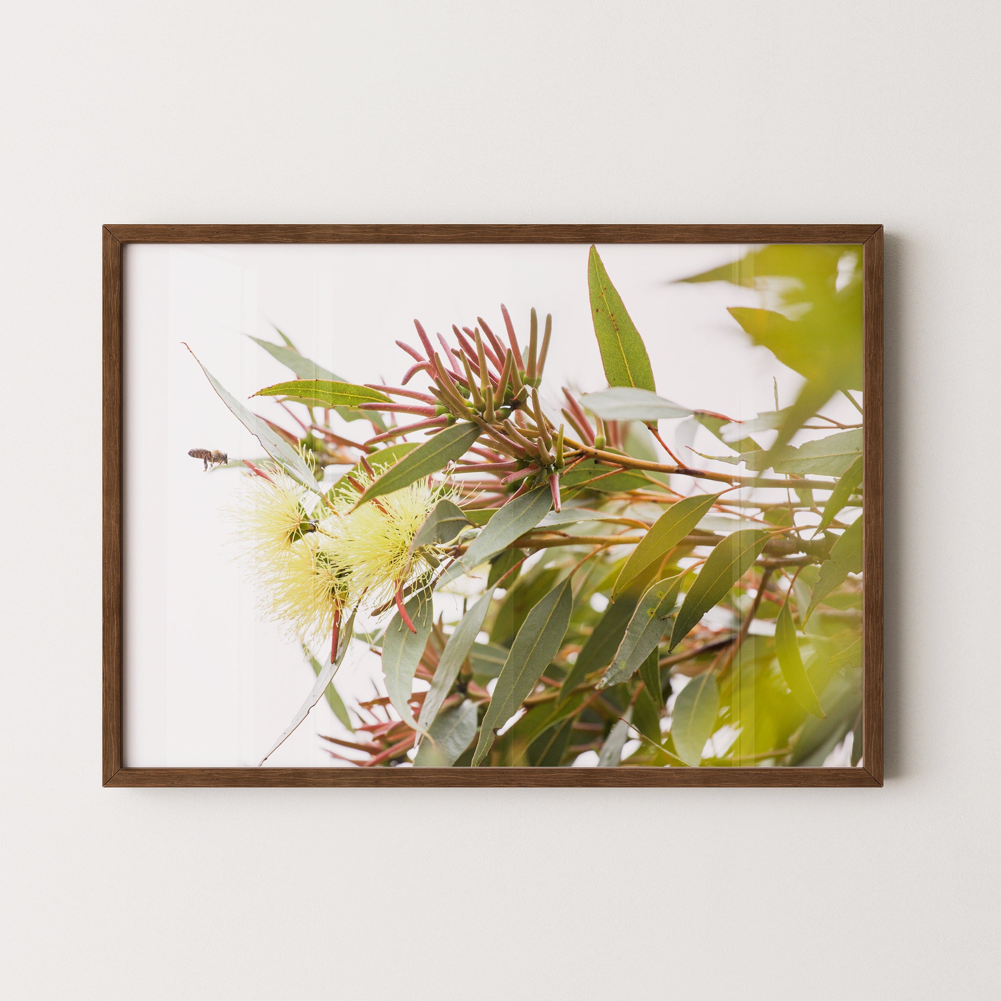 Eucalyptus macrandra and bee premium framed artwork by Australian Flora.