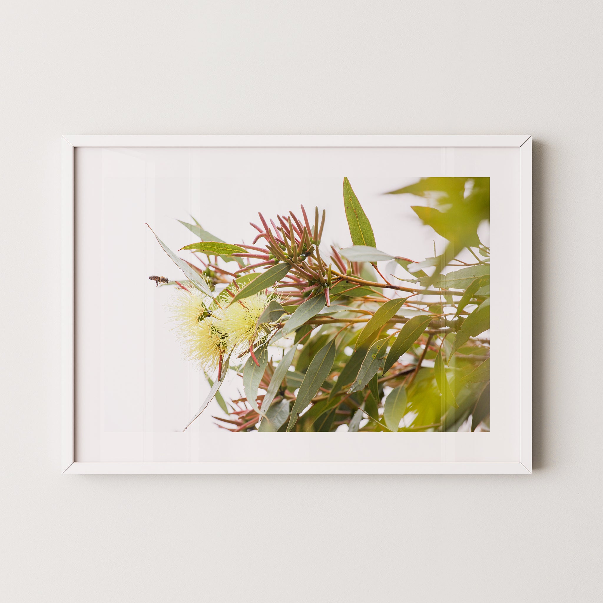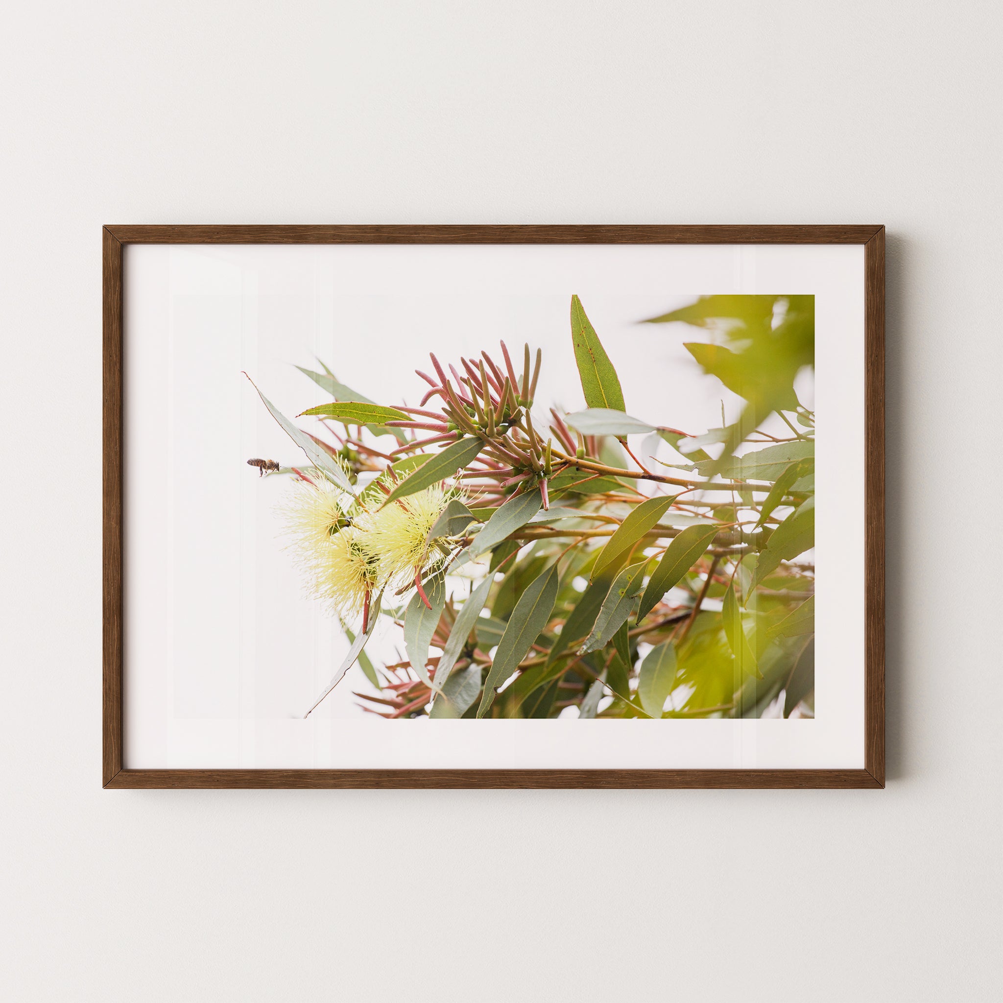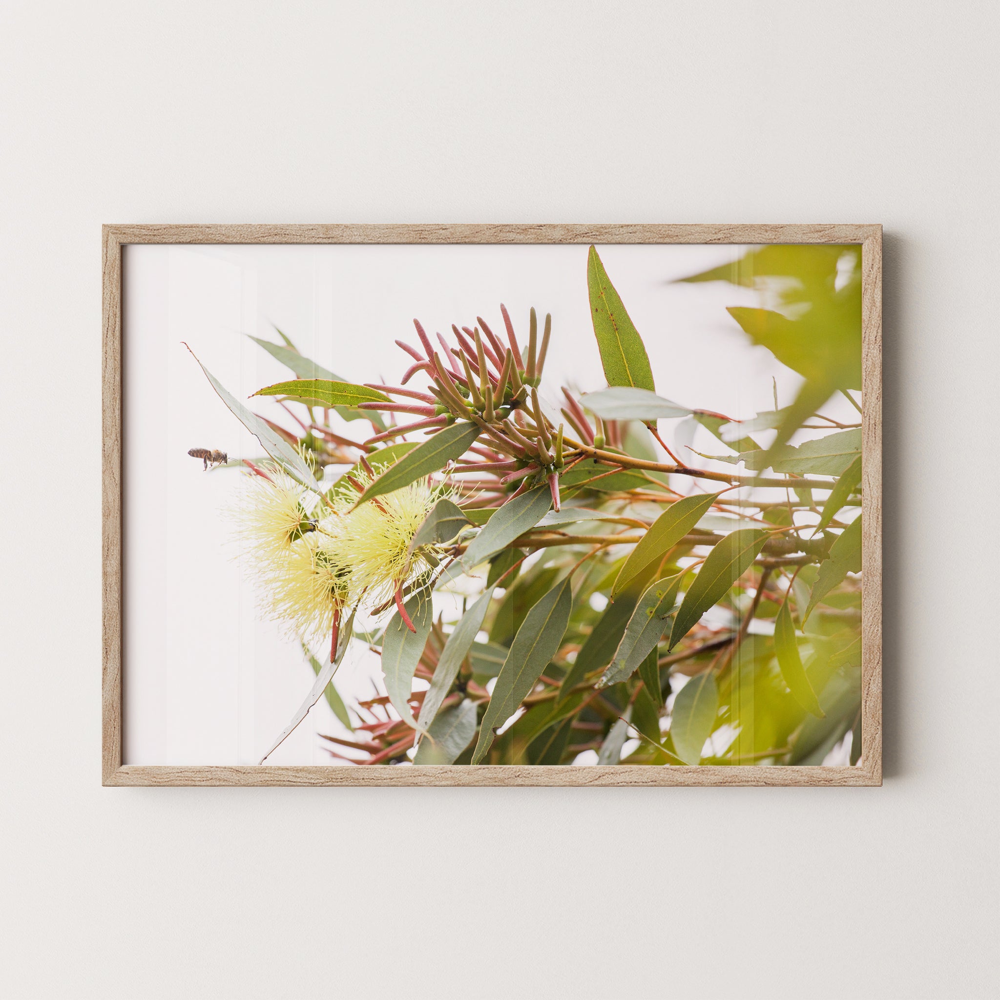Eucalyptus macrandra and bee premium framed artwork by Australian Flora.