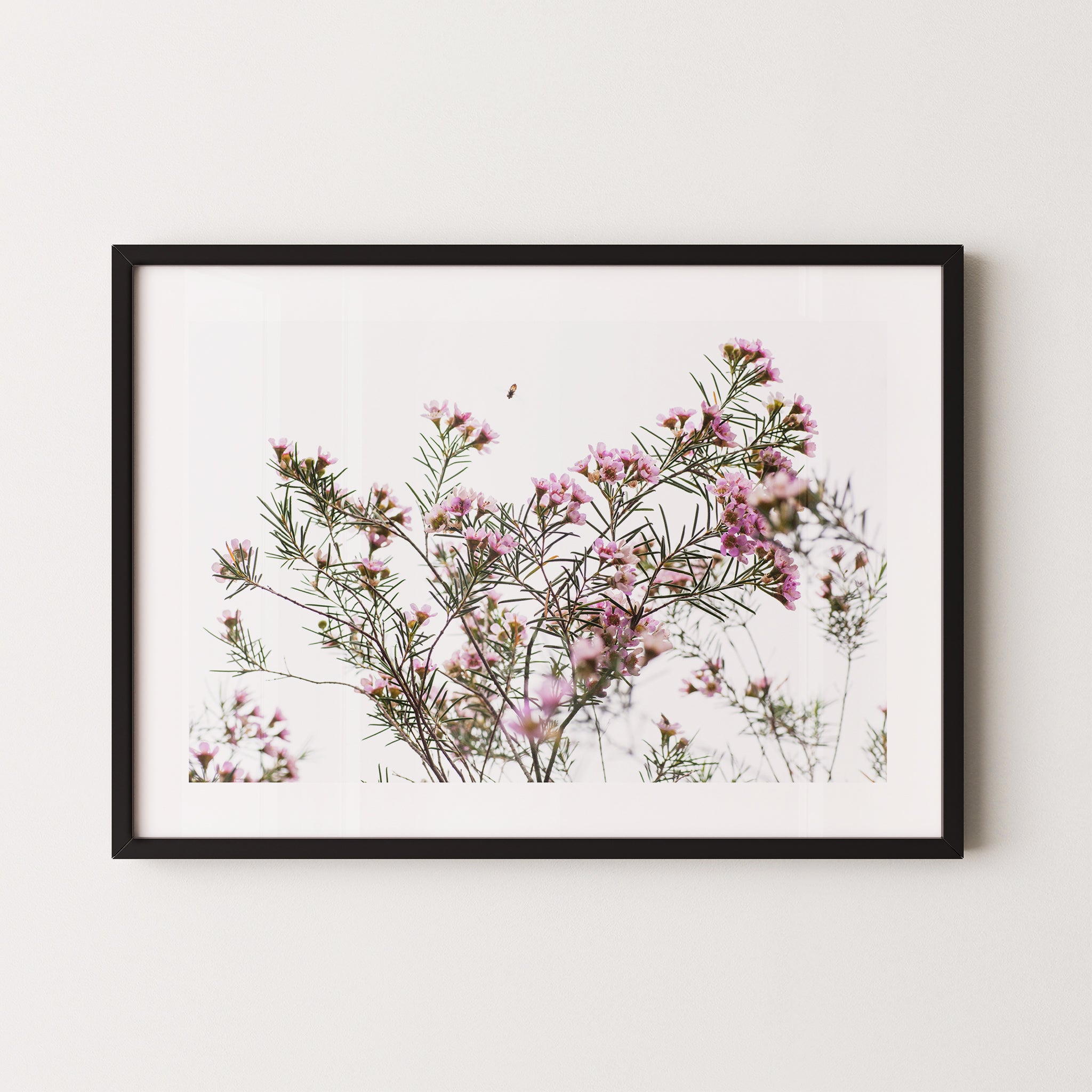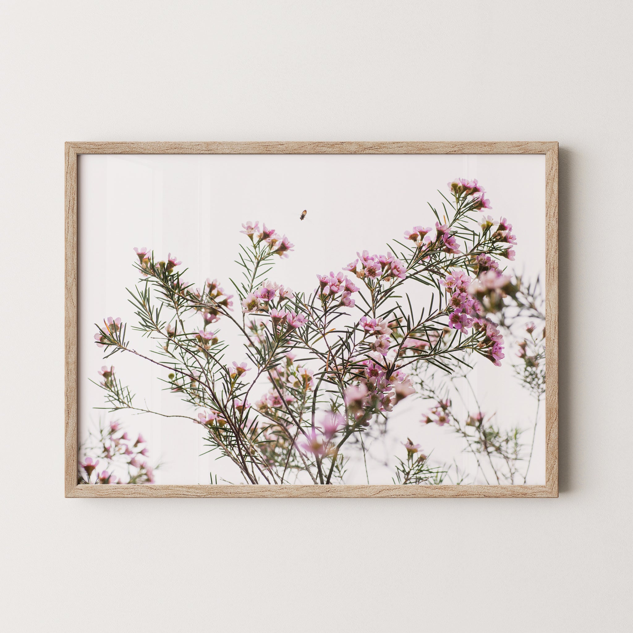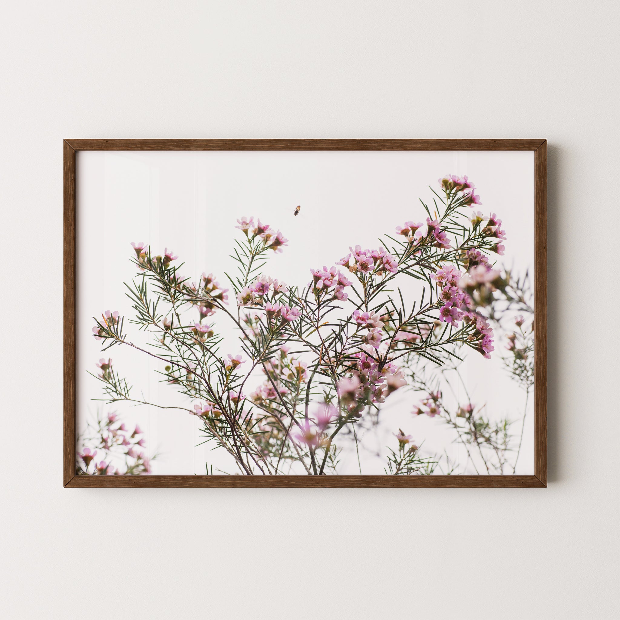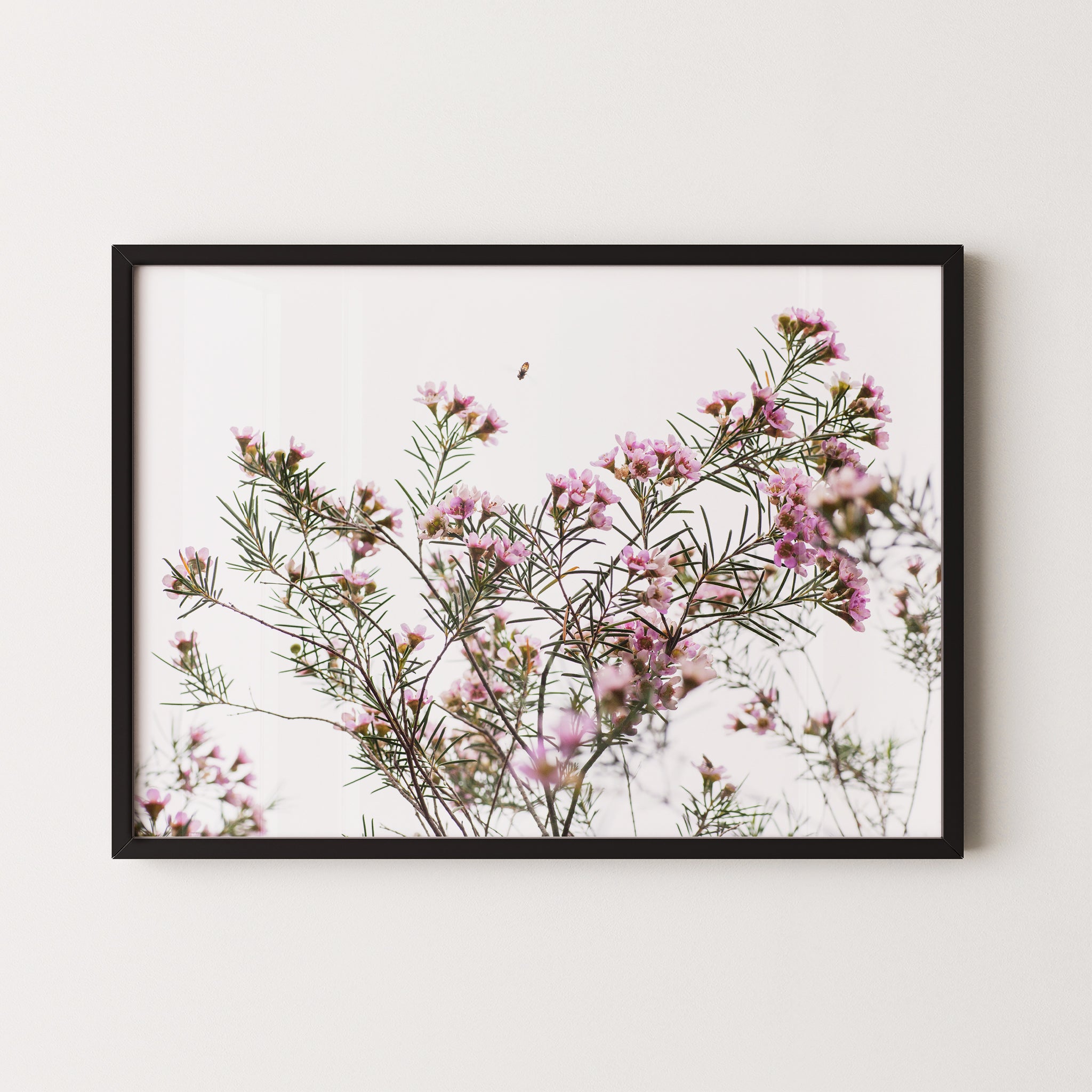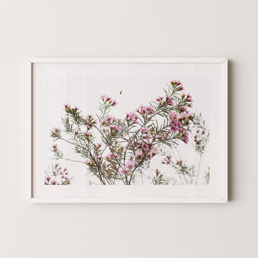 Framed: Geraldton wax flowers and bee