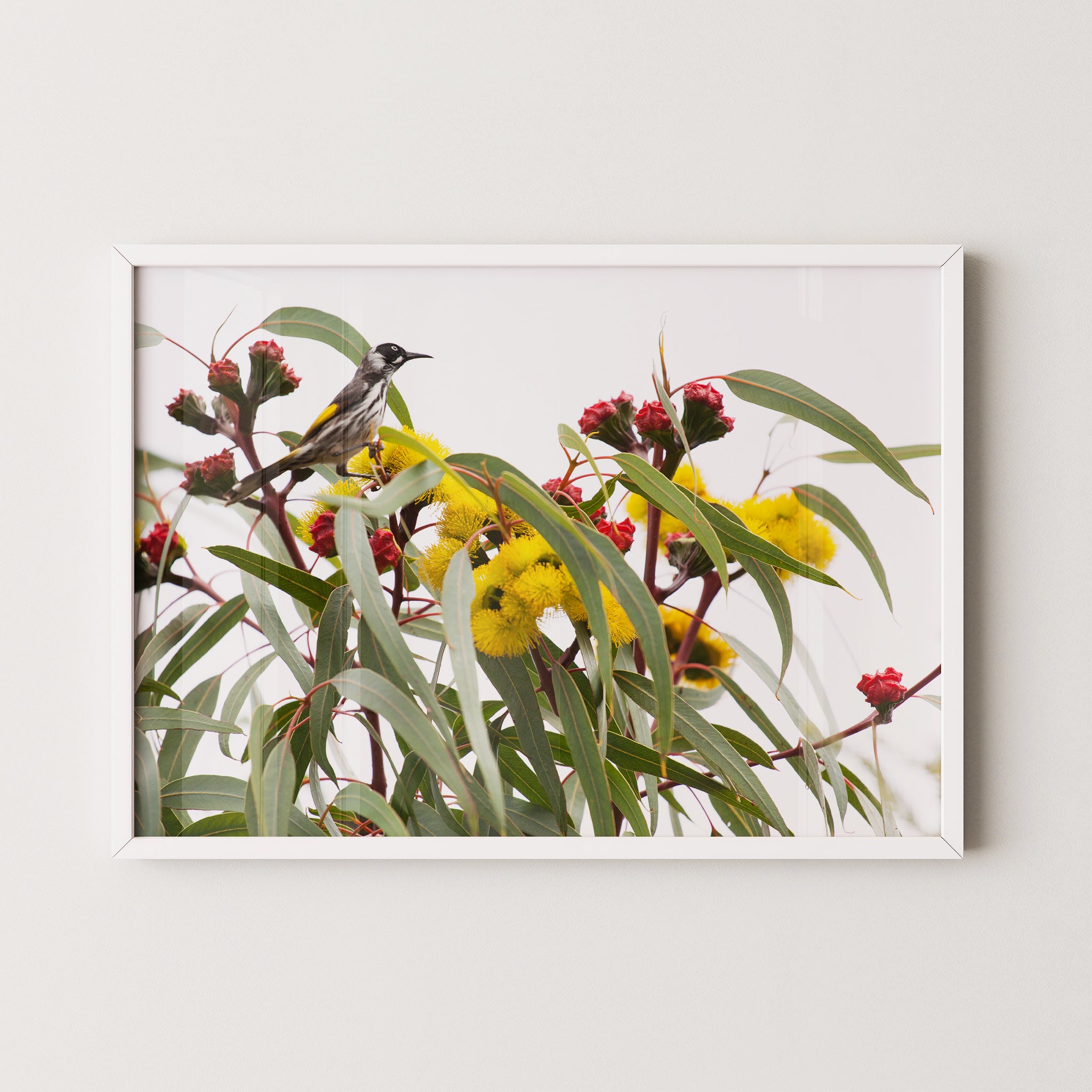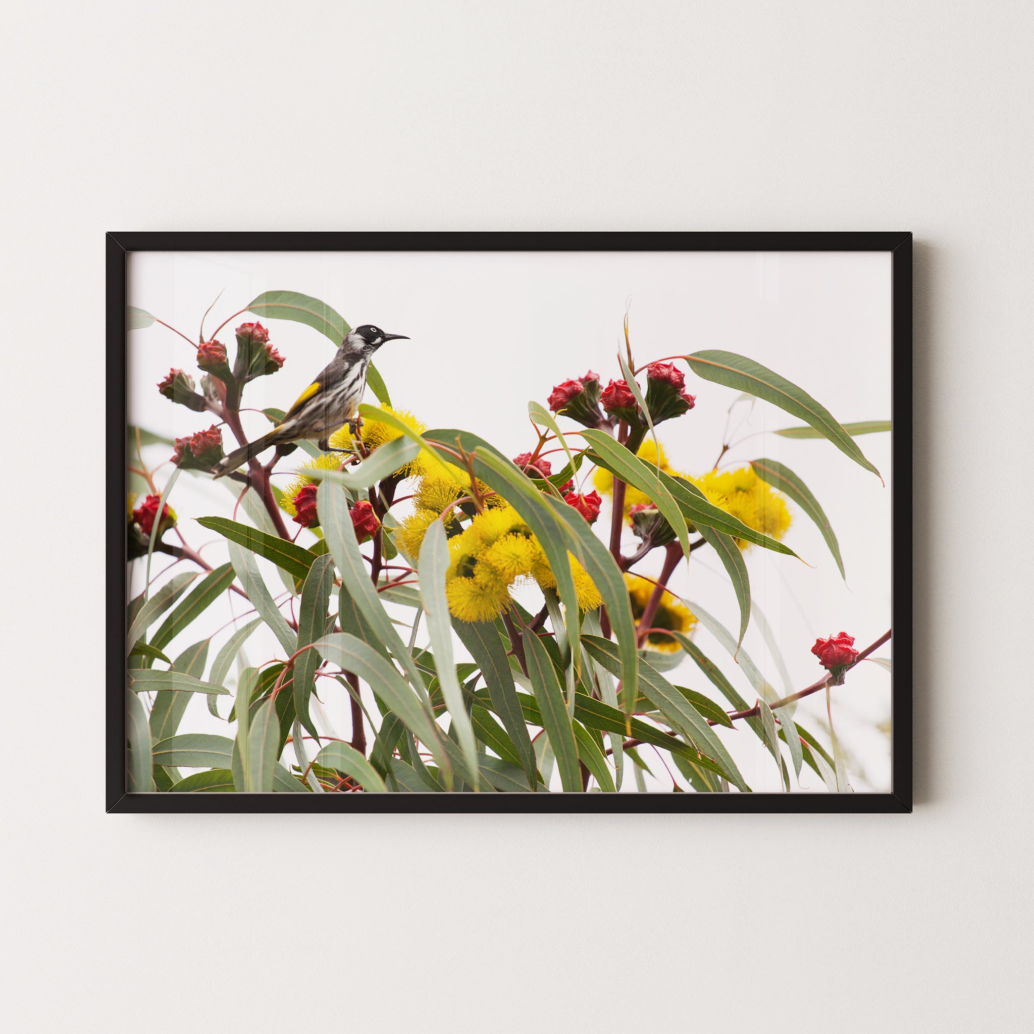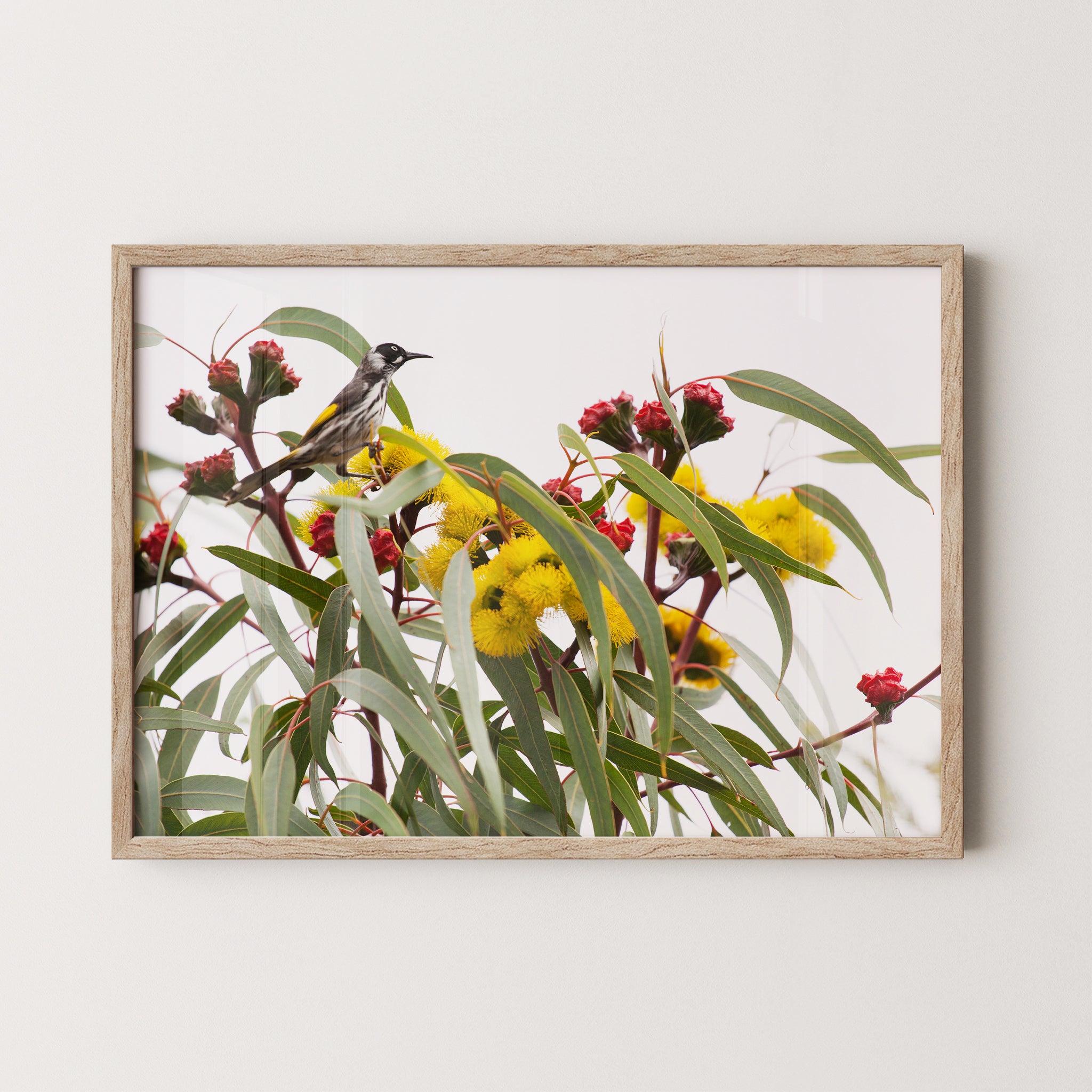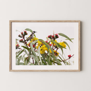 Illyarrie and honeyeater premium framed artwork by Australian Flora.