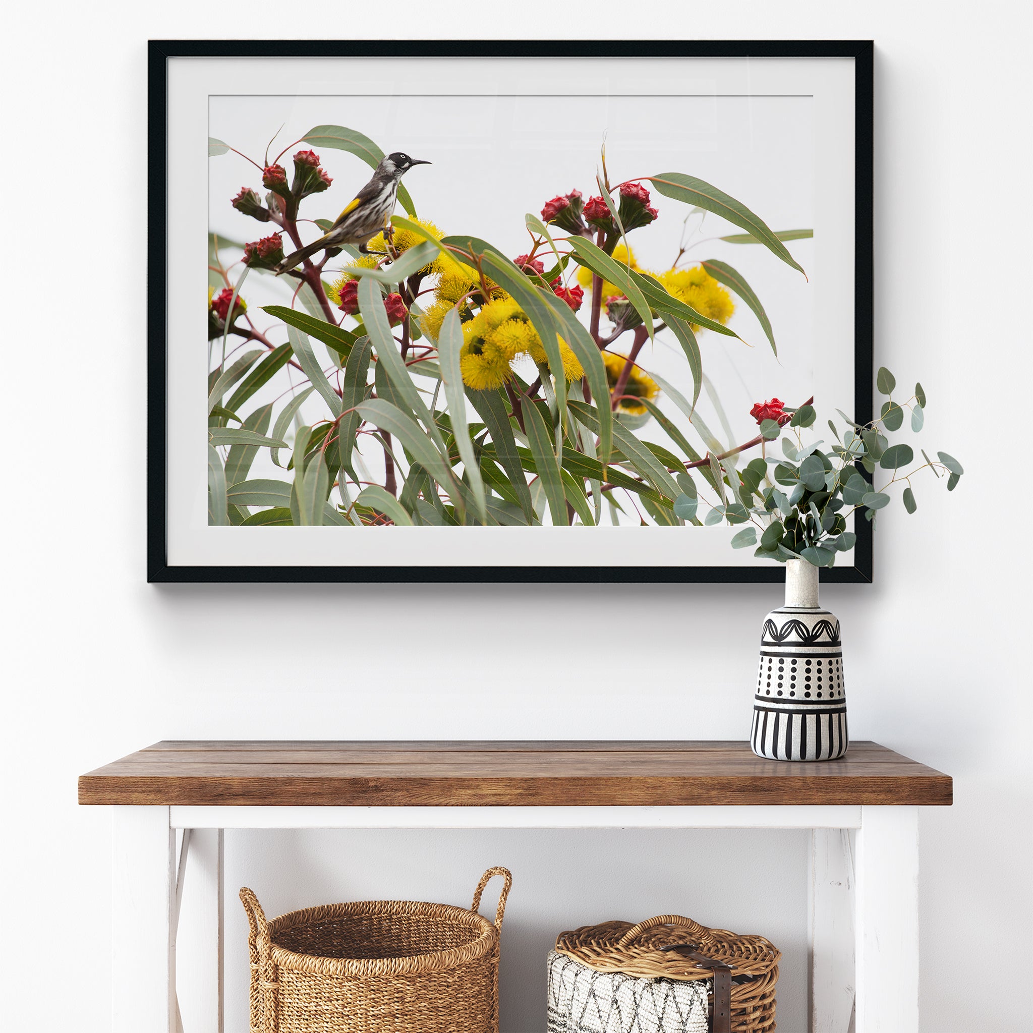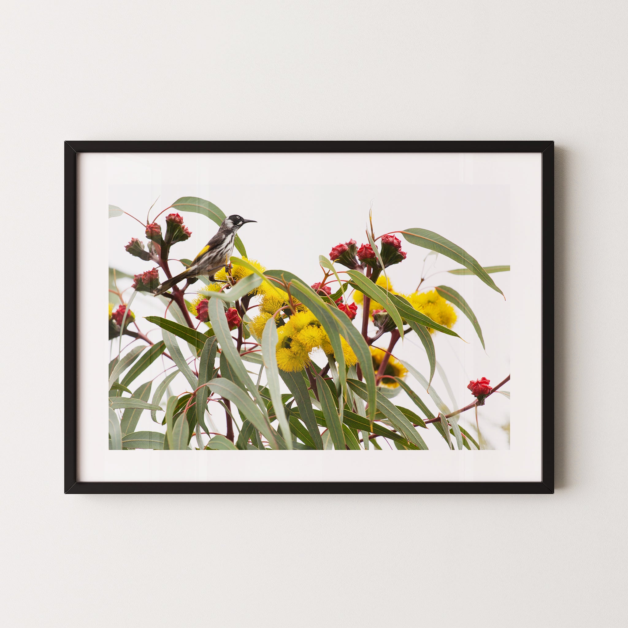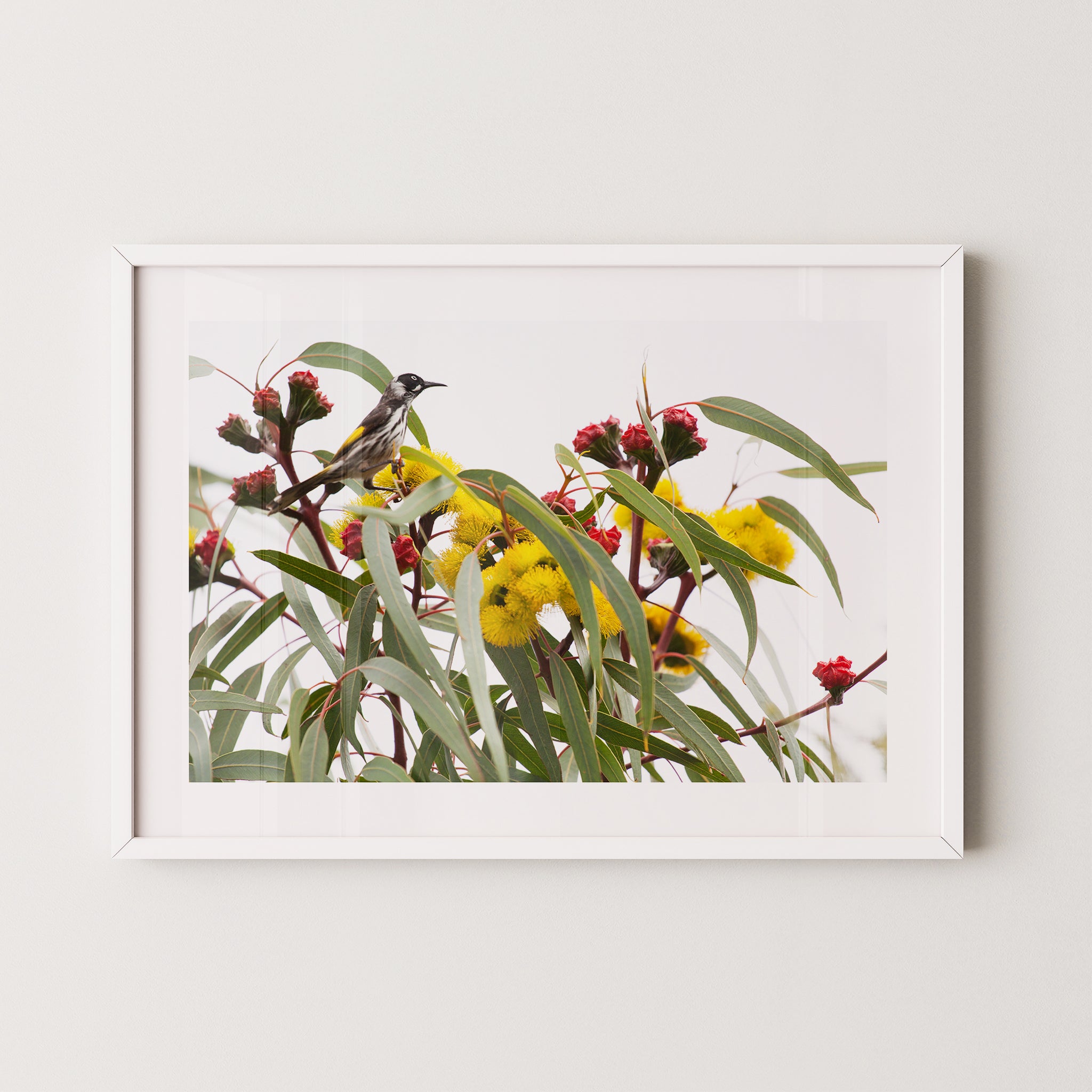 Illyarrie and honeyeater premium framed artwork by Australian Flora.