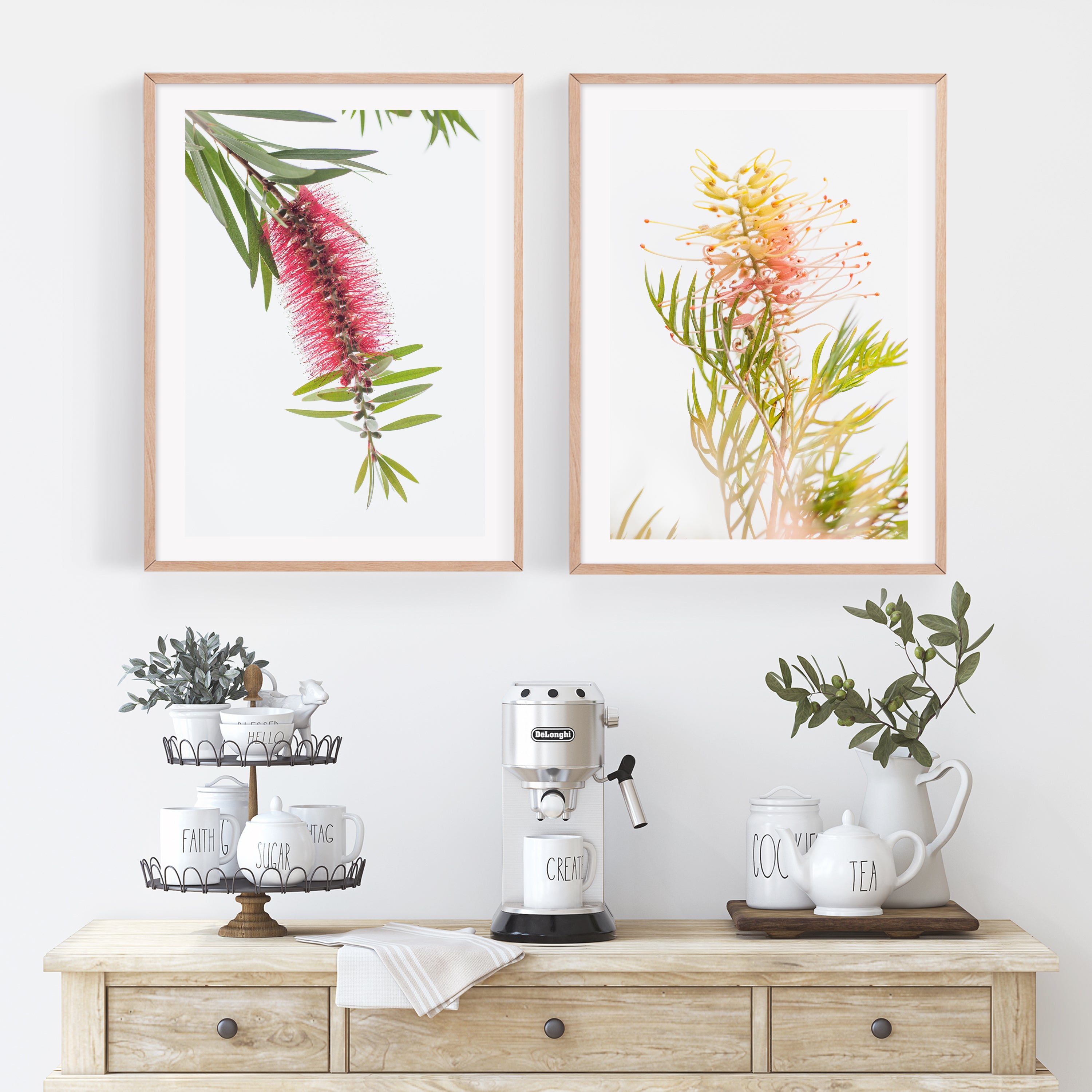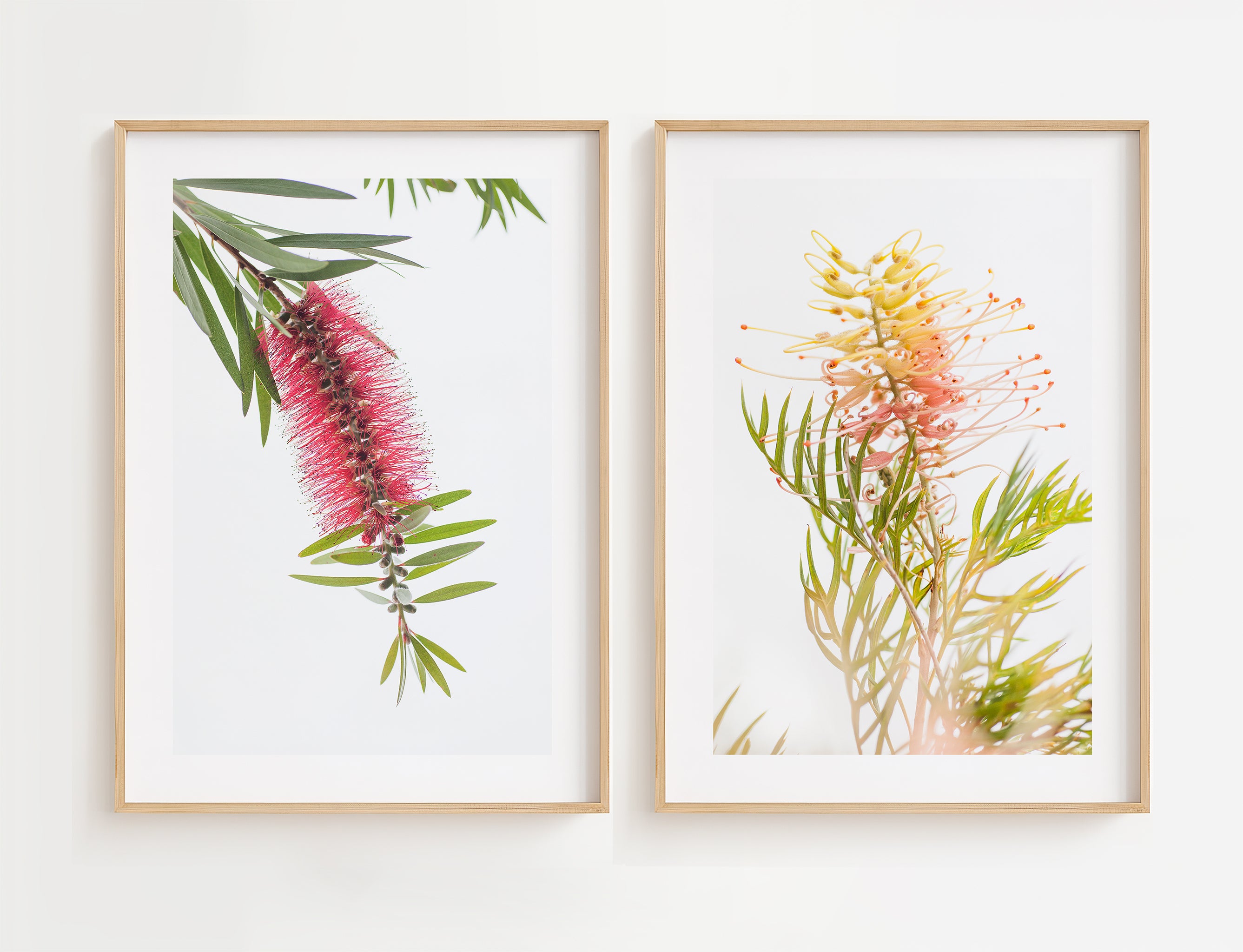 Grevillea and Bottlebrush flowers set of 2 photography prints by Australian Flora.