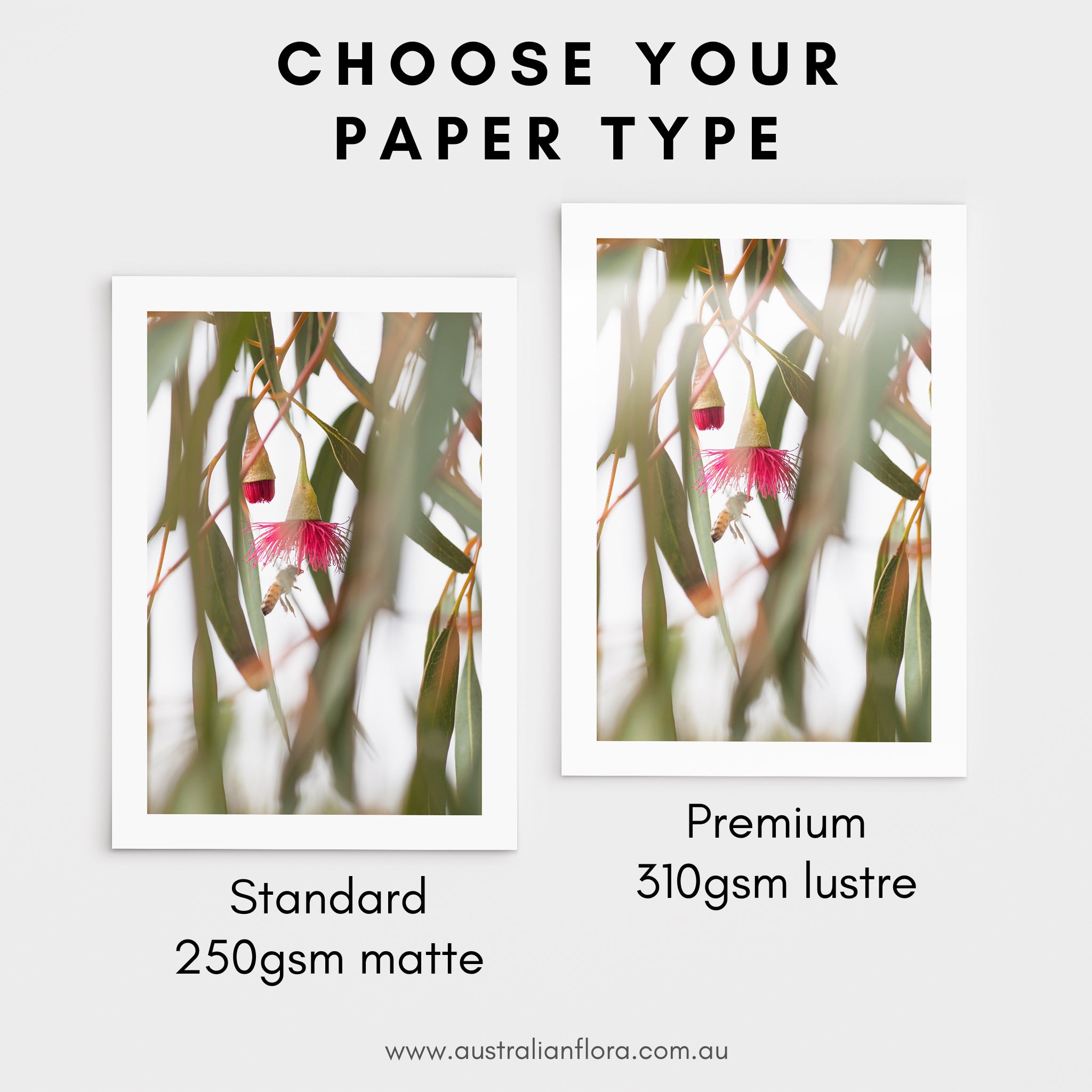 - Standard 250gsm matte - a sturdy white paper stock with a smooth matte finish - great for DIY framing.