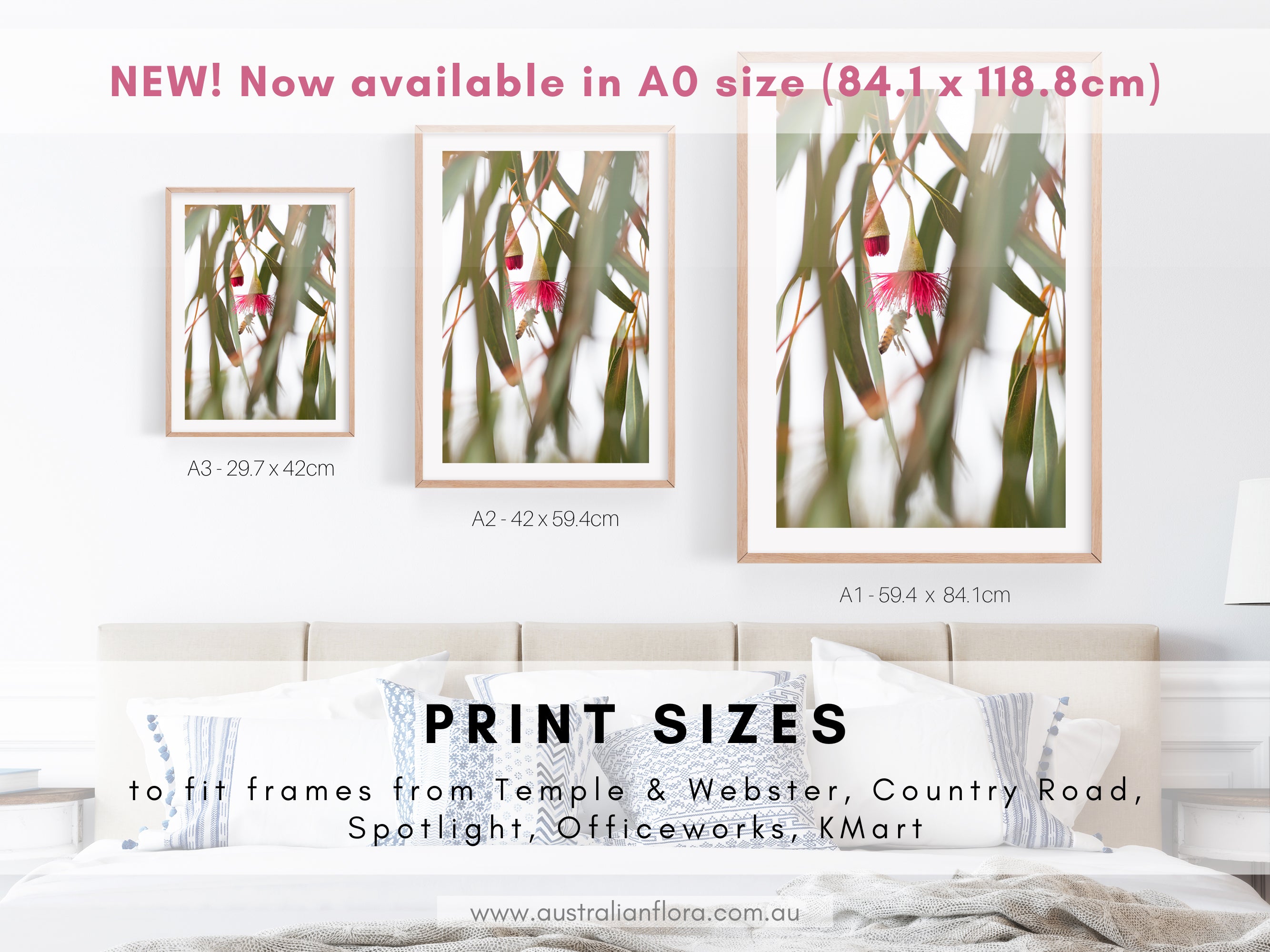 - Easy DIY framing - prints are available in a range of popular sizes to suit frames from stores including Temple and Webster, Country Road, Spotlight, Officeworks, Kmart, and more - as well as the IKEA ‘Hovsta’ and ‘Ribba' series.