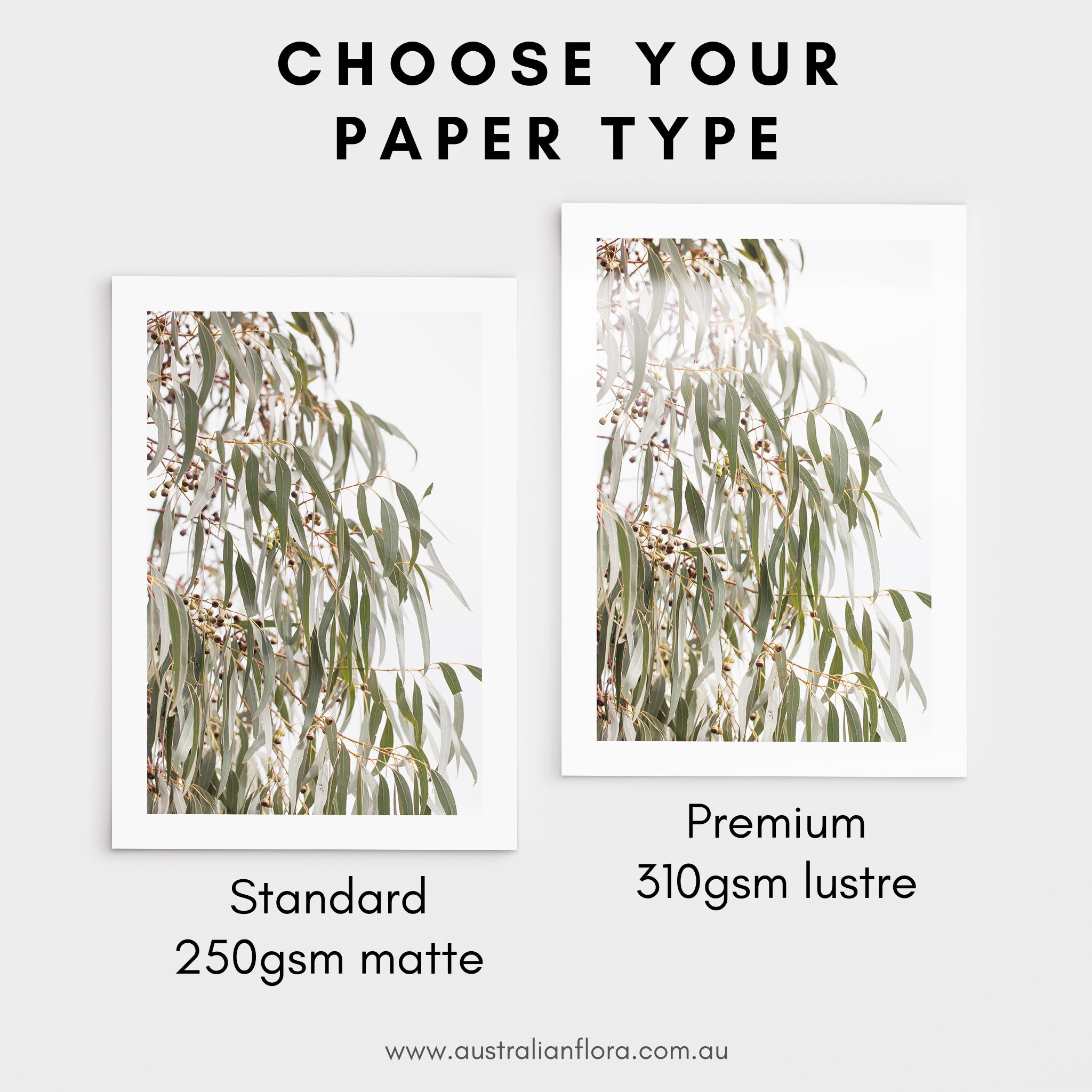 - Standard 250gsm matte - a sturdy white paper stock with a smooth matte finish - great for DIY framing.