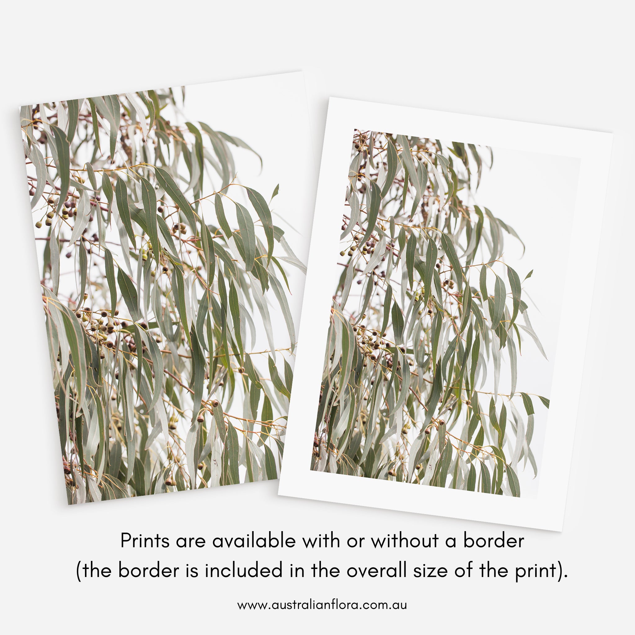 - Prints can be printed 'edge-to-edge' or include an optional white border, to provide visual relief from the frame and create a clean, contemporary look. The white border is included in the overall size of the print.