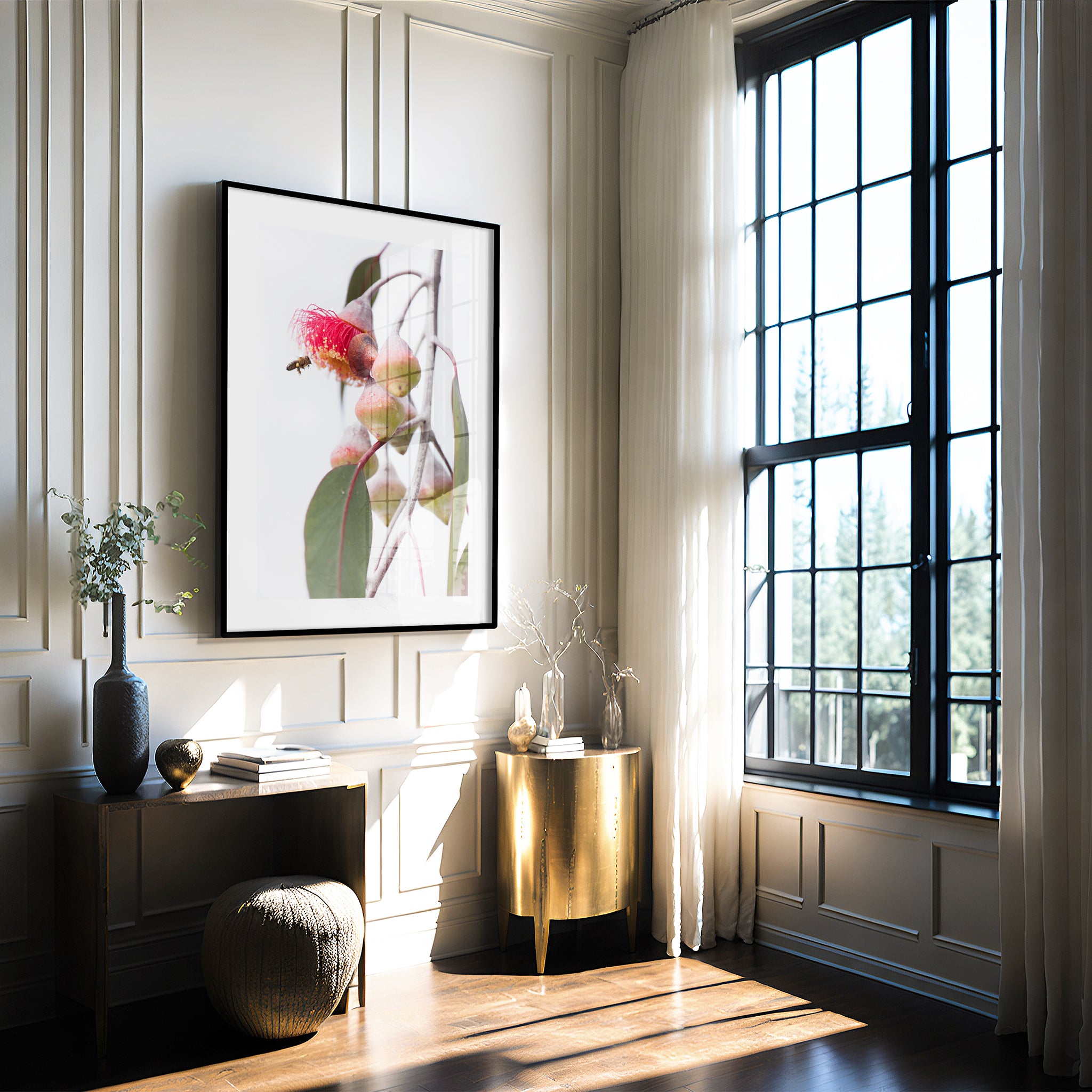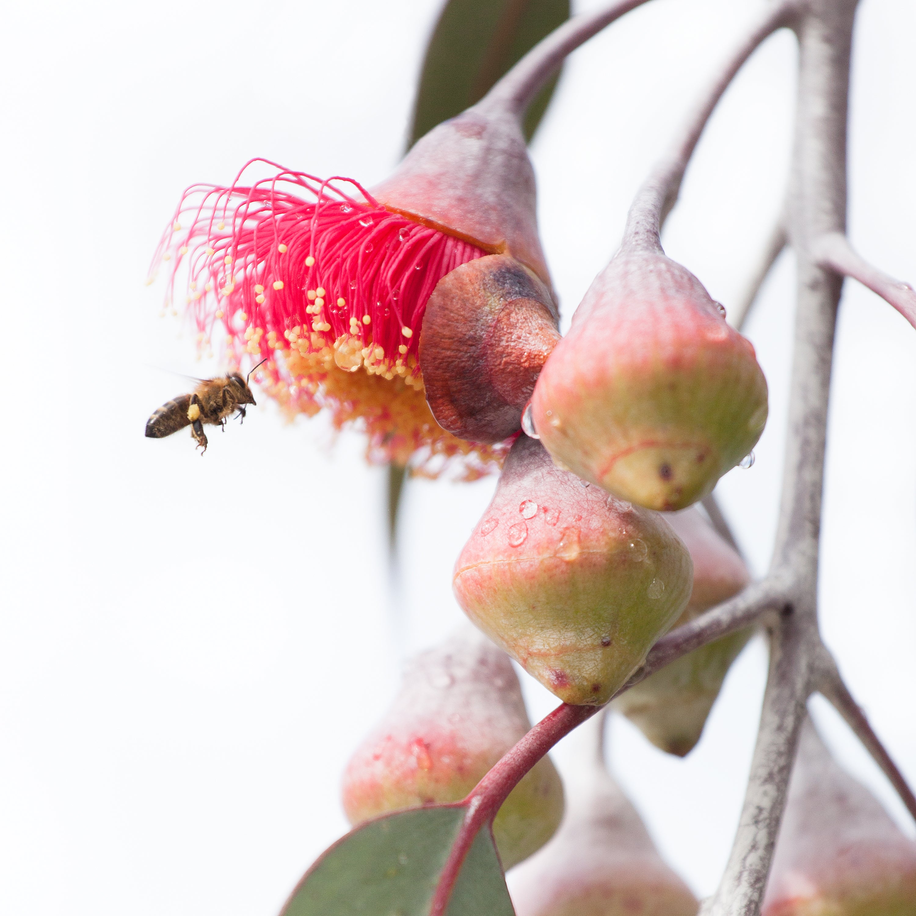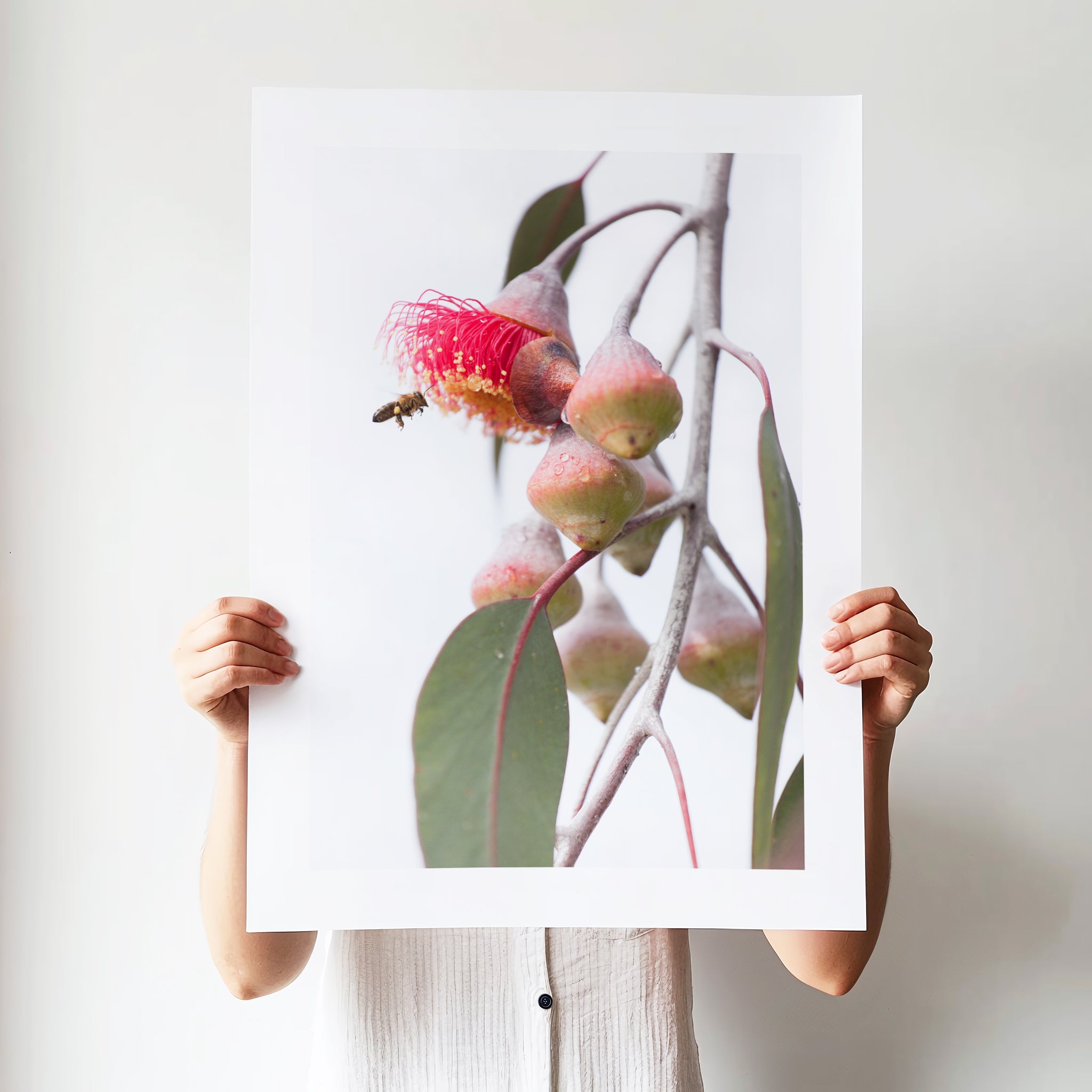 Eucalyptus caesia and bee photography print by Australian Flora.