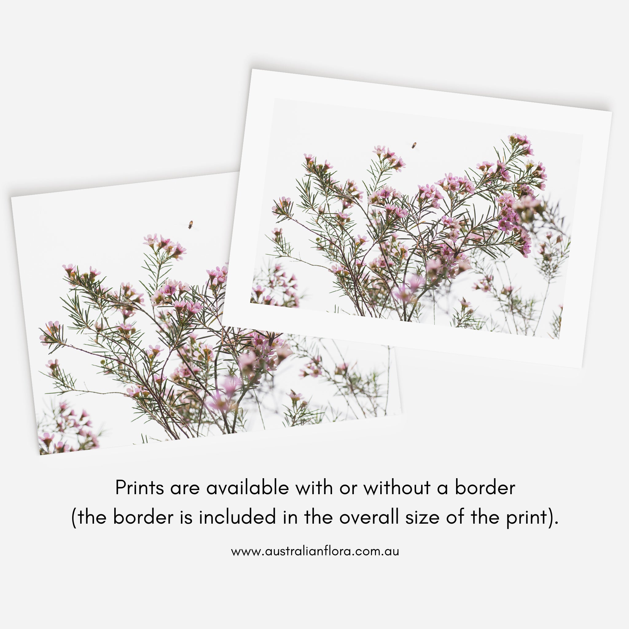 Geraldton Wax flowers and bee photography print by Australian Flora.