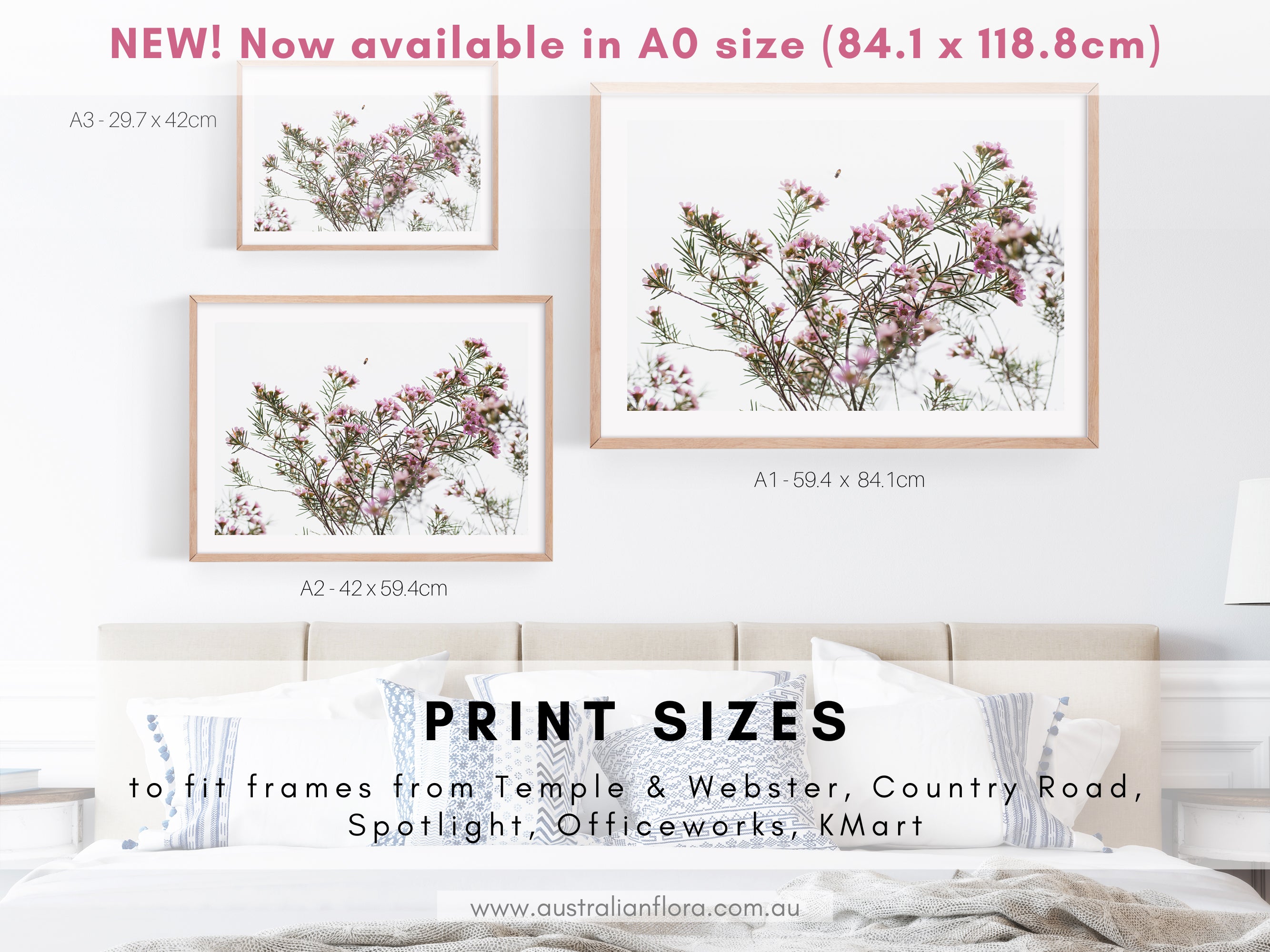 - Easy DIY framing - prints are available in a range of popular sizes to suit frames from stores including Temple and Webster, Country Road, Spotlight, Officeworks, Kmart, and more - as well as the IKEA ‘Hovsta’ and ‘Ribba' series.