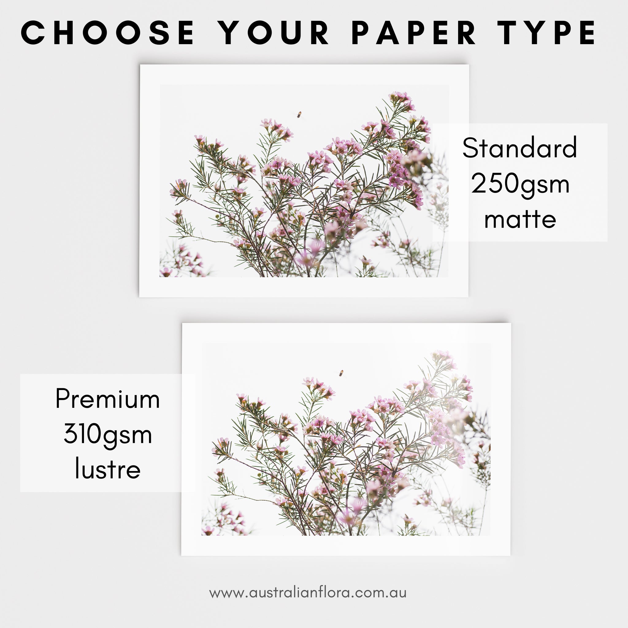 - Standard 250gsm matte - a sturdy white paper stock with a smooth matte finish - great for DIY framing.