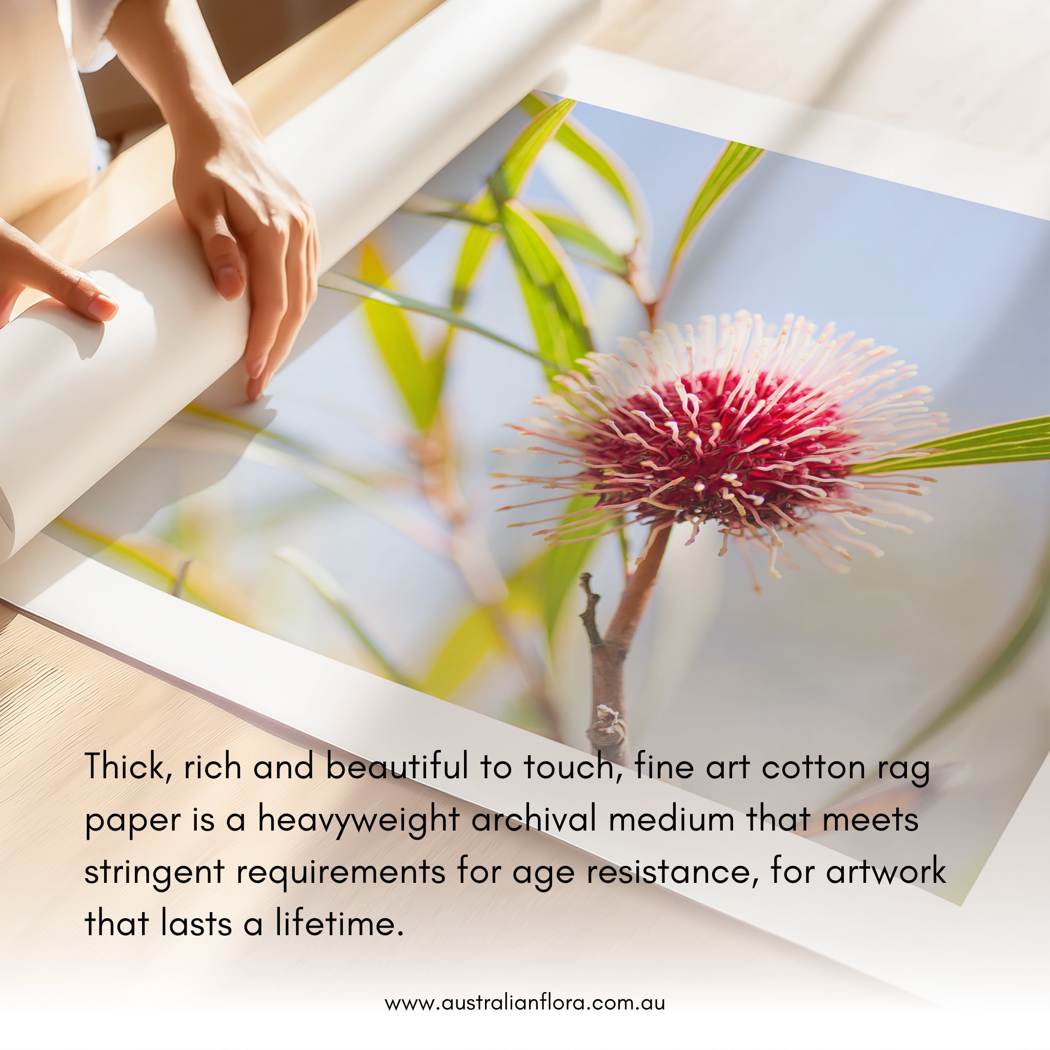 All framed artworks and prints at Australian Flora are insured against damage and we take full responsibility to make sure your order arrives safely. In the unlikely event that your parcel arrives damaged, please contact us within 24 hours of delivery, with photos of the damaged parcel and contents. Once your request is processed, a replacement will be arranged for you promptly at no extra cost.