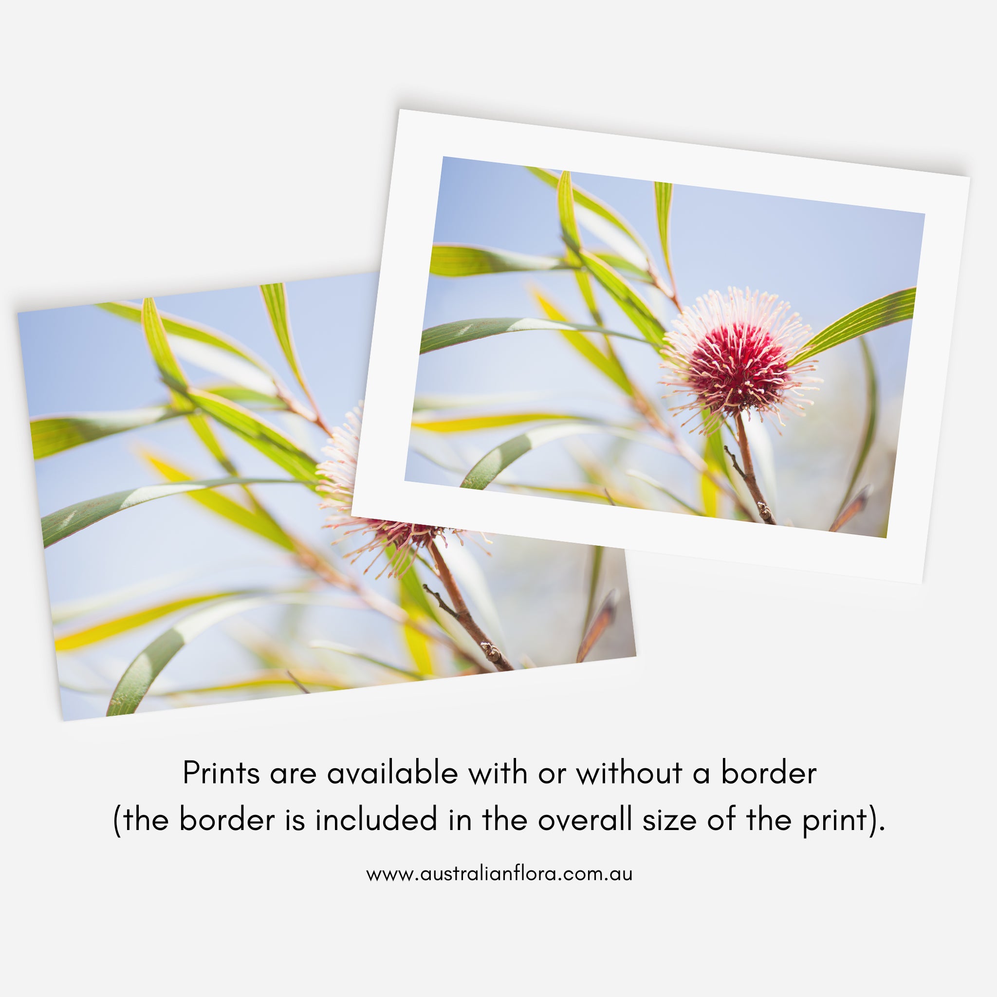 - Prints can be printed 'edge-to-edge' or include an optional white border, to provide visual relief from the frame and create a clean, contemporary look. The white border is included in the overall size of the print.