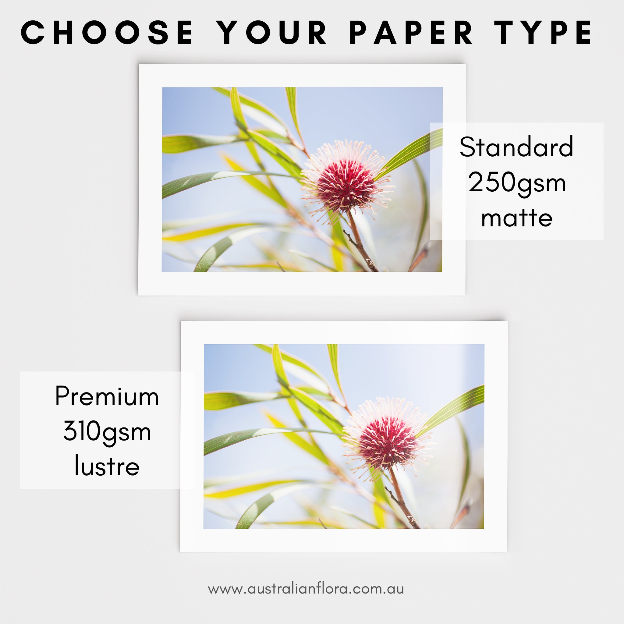 - Standard 250gsm matte - a sturdy white paper stock with a smooth matte finish - great for DIY framing.
