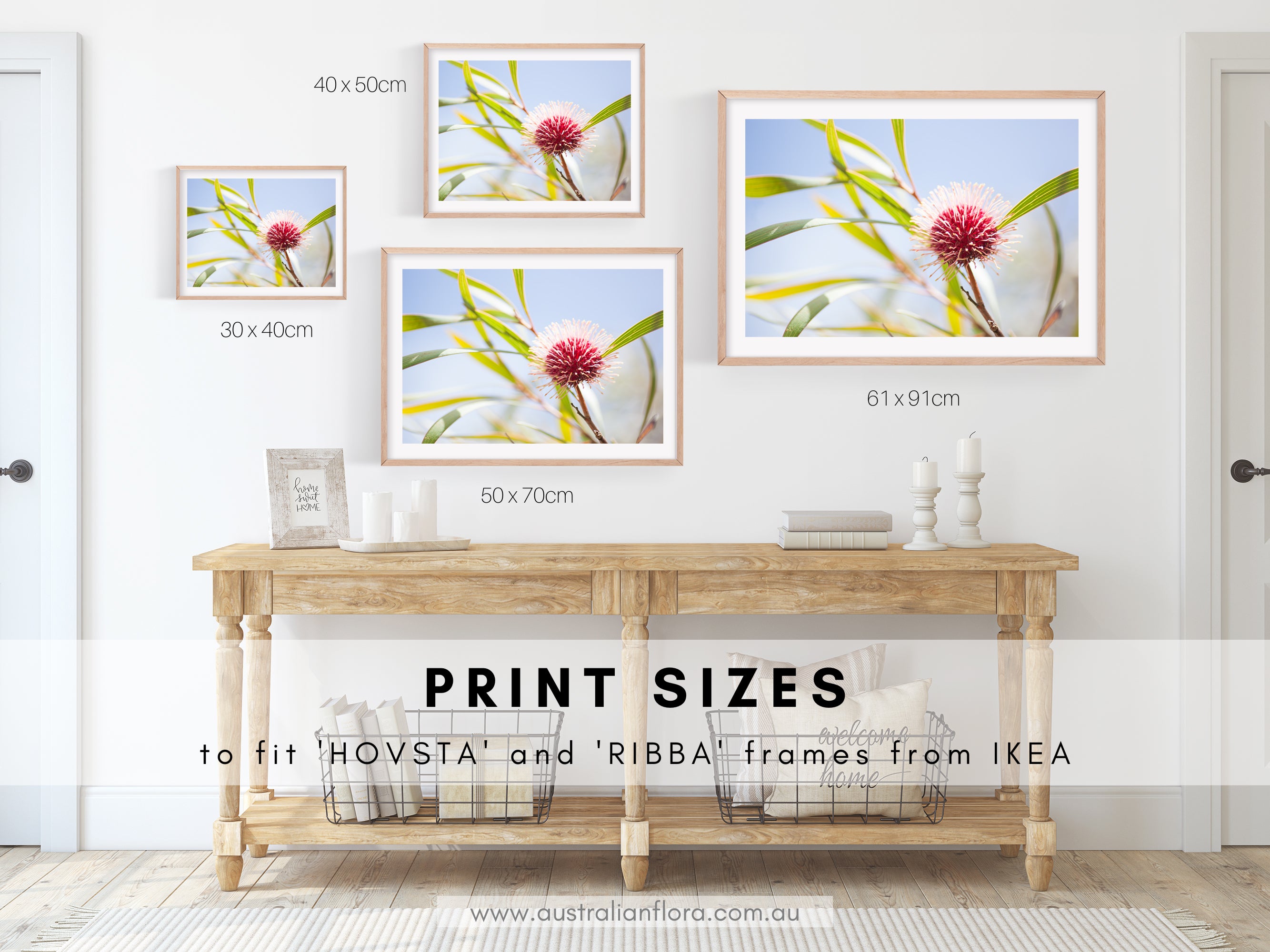 - Easy DIY framing - prints are available in a range of popular sizes to suit frames from stores including Temple and Webster, Country Road, Spotlight, Officeworks, Kmart, and more - as well as the IKEA ‘Hovsta’ and ‘Ribba' series.